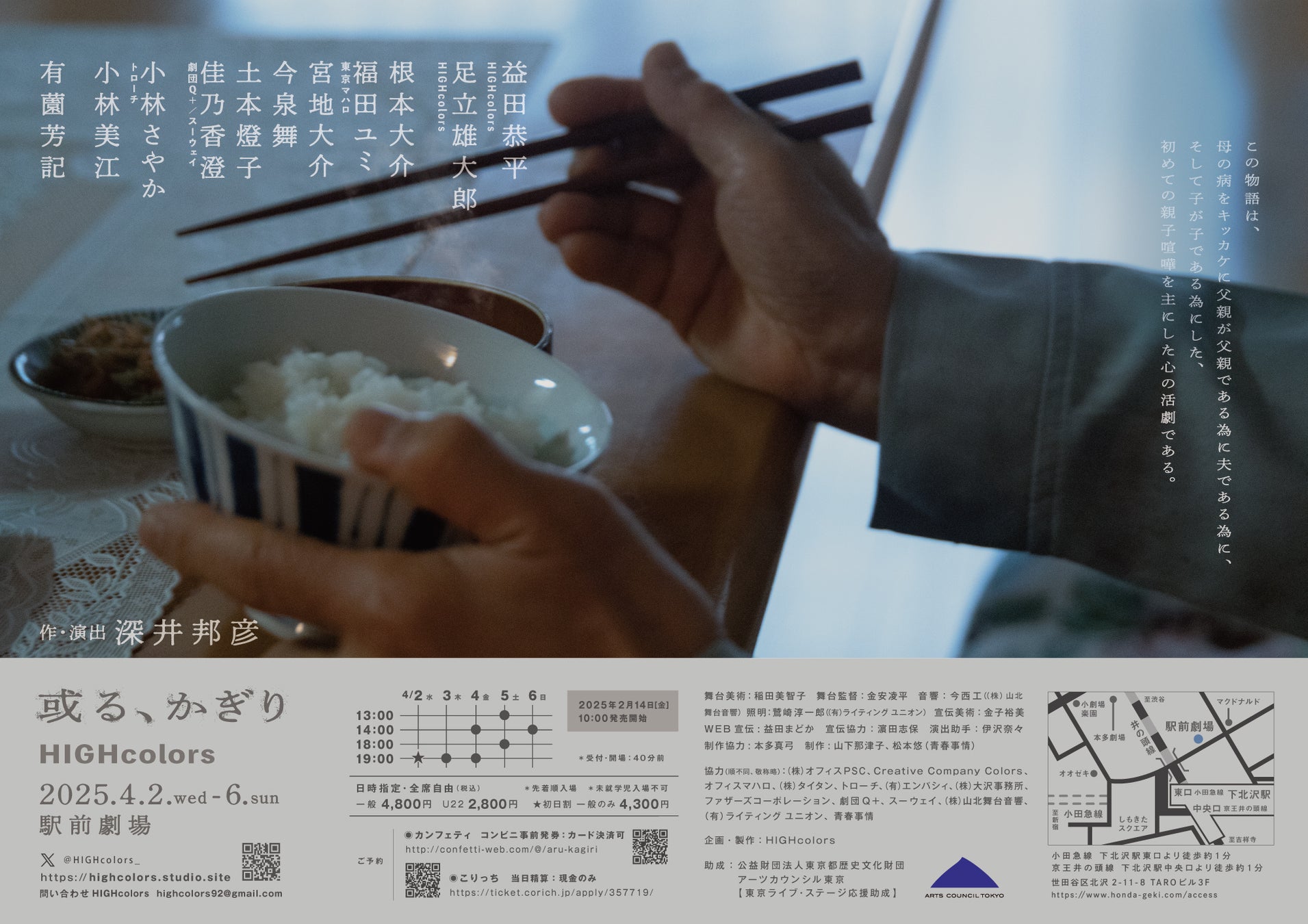 HIGHcolors『或る、かぎり』が2025年4月2日 (水) 〜 2025年4月6日 (日)に駅前劇場(東京都 世田谷区 北沢 2-11-8)にて上演されます。
