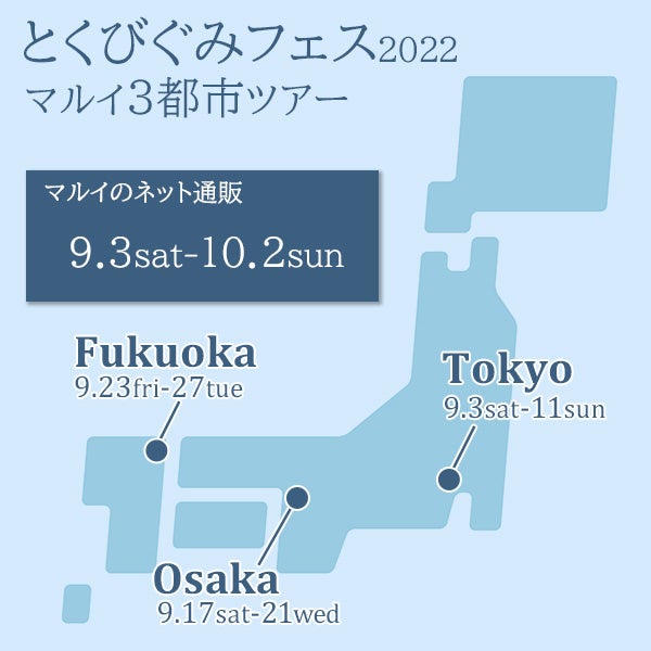 株式会社丸井(本社:東京都中野区、代表取締役社長:青野 真博)は、マルイ3店舗でのイベント&マルイのネット通販「マルイウェブチャネル」にて「とくびぐみフェス2022」オリジナルグッズの販売を実施します。