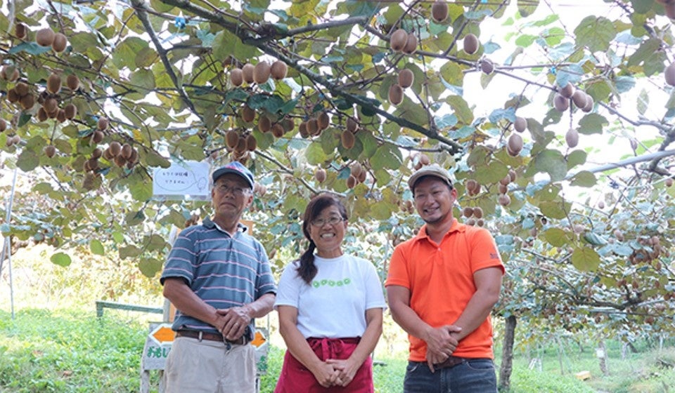 50種類以上のキウイを栽培しており、季節ごとに甘みや酸味、香りが変化する多彩な味わいが楽しめます。農薬に頼らず、自然の資源を循環させる栽培方法により果肉が詰まり、香り高く濃厚な甘みが特徴のキウイを生産しています。完熟時の果汁は非常にジューシーで、農園では収穫体験も実施し、来訪者にキウイのおいしさや発見を届けています。