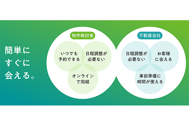 これまで不動産会社は、連絡が取れるか分からない物件購入検討者と、電話やメールのやりとりを重ねることに多くの時間を費やしていました。今後は、その時間を接客準備や実際の接客に充てられるようになります。本機能を通じて、物件購入検討者と不動産会社の双方にとって、より楽で速い住まい探しが可能になります。