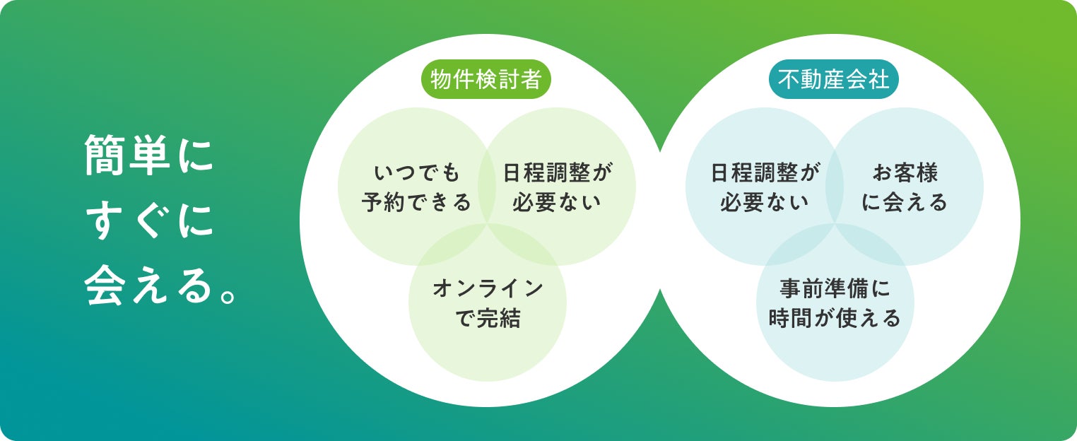 新築・中古一戸建て、中古マンション、土地探しでの店舗や物件の来場・見学予約がいつでも可能に