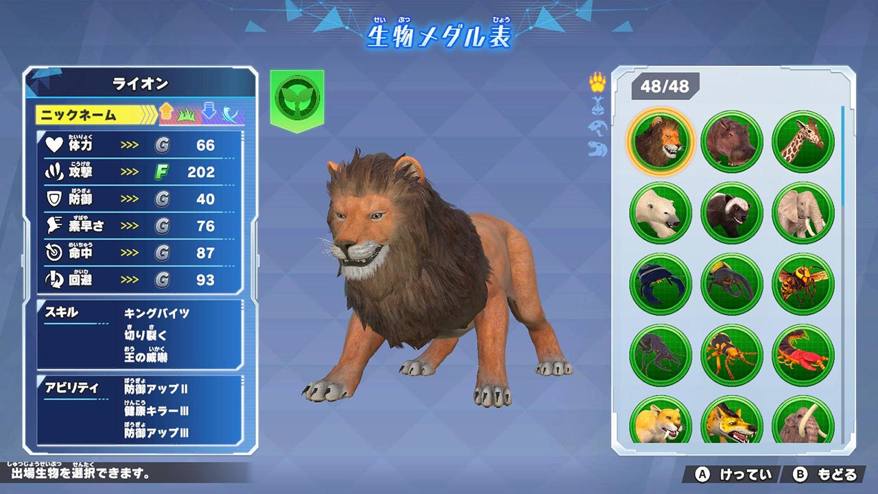 また、ゲーム中に育成した生物の記録データとなる「生物メダル」を、「1 vs 1」形式を遊ぶ場合には1個以上、「3 vs 3」及び「勝ち抜き戦」形式の場合には3個以上、自分と対戦相手それぞれが所持している必要があります。