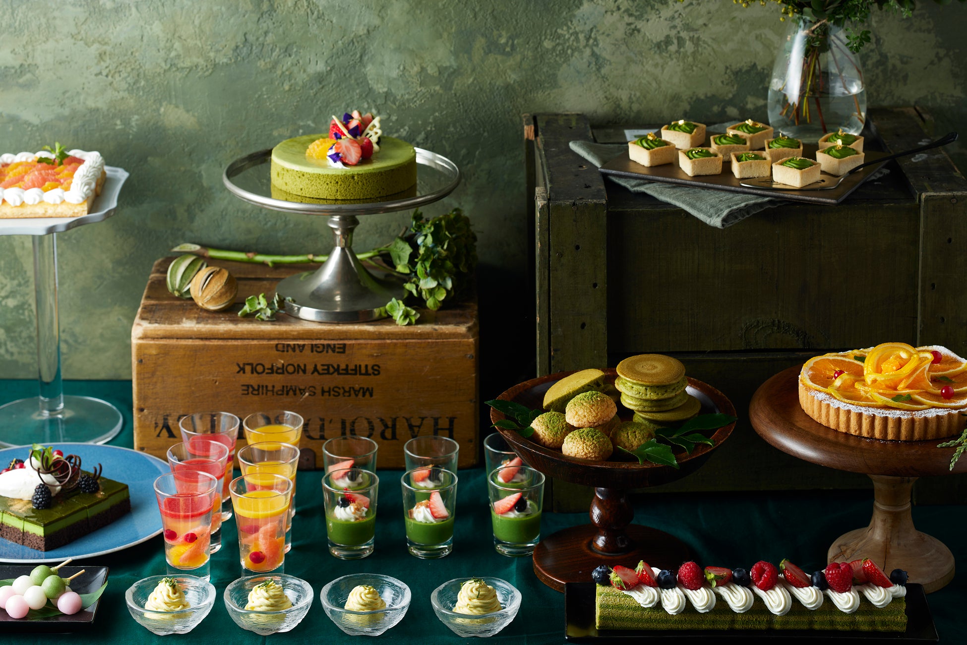 <抹茶と柑橘のデザートブッフェメニュー内容>