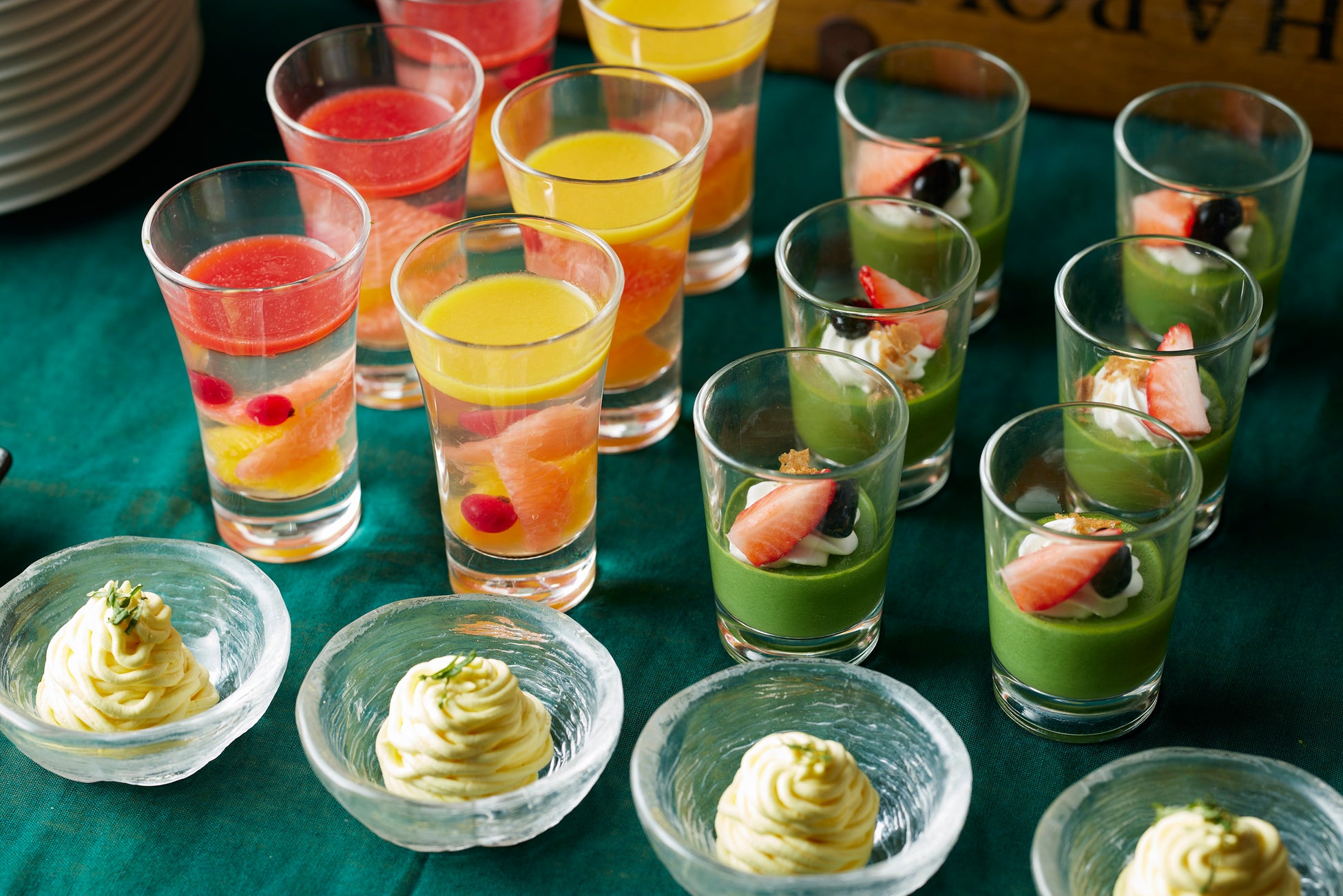 お好みに合わせて選べる料理と、芳醇な抹茶に爽やかな柑橘の酸味がマッチするデザートブッフェで、贅沢な初夏のランチタイムをお過ごしください。