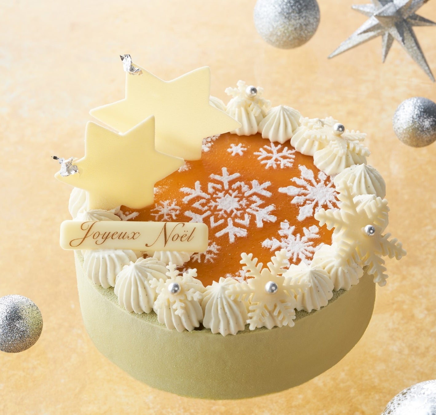 アプリコット果肉入りのチーズケーキを土台に、バニラクリームと上品なピスタチオムースを重ねました。トップには華やかな酸味のアプリコットジュレとガナッシュ・モンテヴァニーユを飾り、バニラ・ピスタチオ・アプリコットの三味が調和する、特別なクリスマスのひとときをお届けします。