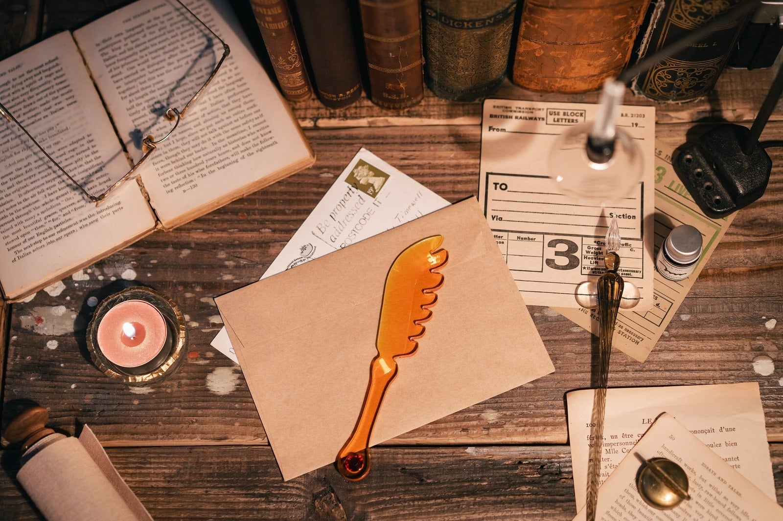 炎を囲んで魔女たちが集う「ワルプルギスの夜」の展示に寄せて登場したのは、、炎をまとう不死鳥の羽をイメージしたペーパーナイフです。大切な手紙を開封するとき、不死鳥のようにひらりと取り出して。