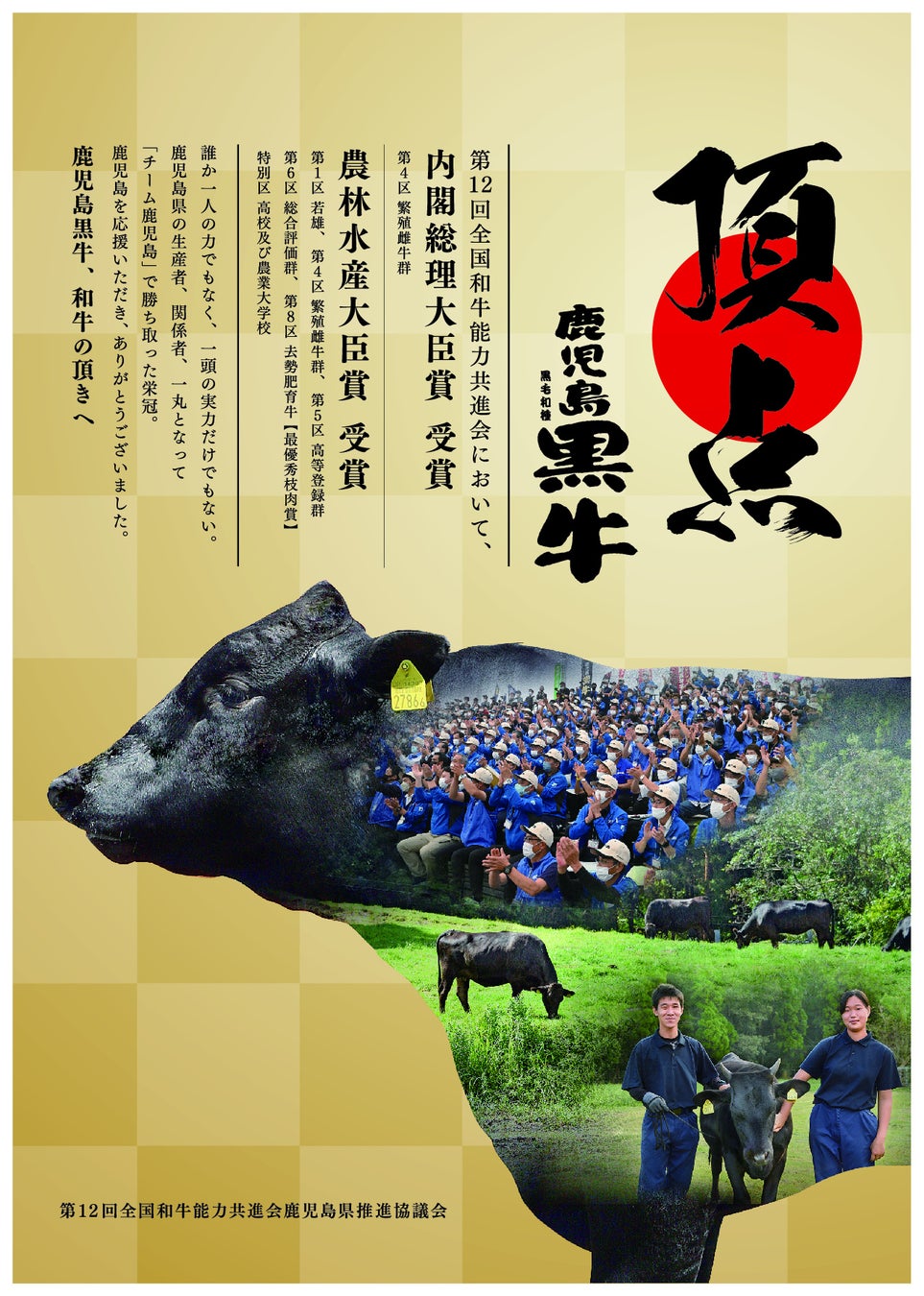 「鹿児島黒牛」は鹿児島県における飼養期間が最長かつ最終飼養地である黒毛和種の牛肉で、鹿児島県の生産者、関係者が長い年月をかけて肉質の改良に取り組んでこられました。その結果、全国の優秀な和牛を一堂に集め、改良成果を競う「全国和牛能力共進会」において、2大会連続で「和牛日本一」の栄冠に輝きました。