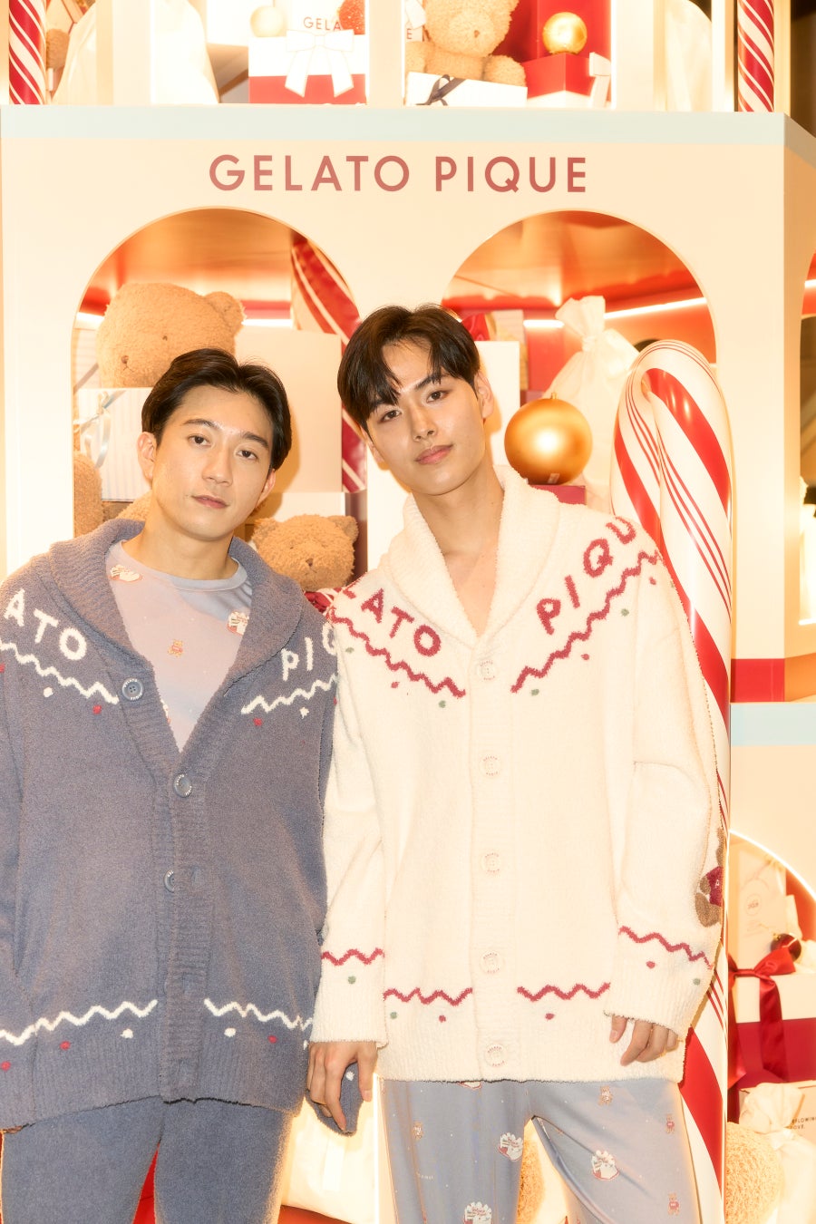 さらに、Netflixの恋愛リアリティショー『ボーイフレンド』に出演し、注目を集めるカップルDaiShunのお二人も来場。ジェラート ピケのカーディガンを色違いで着用し、ダイさんはネイビーを、シュンさんはオフホワイトをチョイス。カップルらしいお揃いコーデを披露。