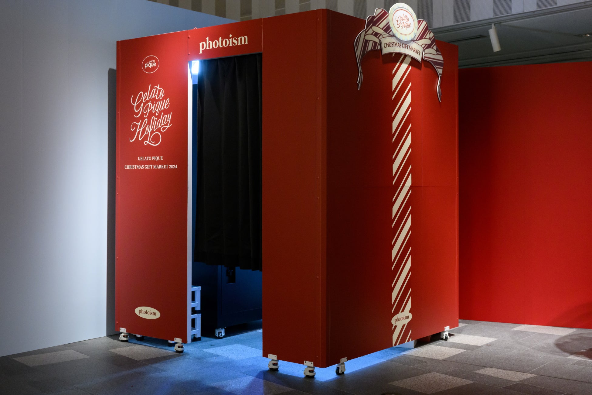 ベアやケーキ、キャンディケインをモチーフにした、GELATO PIQUE CHRISTMAS GIFT MARKET 2024限定のオリジナルフォトフレームのプリント写真機。大切な方との特別なホリデーシーズンの思い出づくりをお楽しみいただいております。ふわふわのサンタパーカーやハートにgelato pique Holidayのロゴが入った手持ちの撮影プロップをご用意し、ホリデー気分高まる写真を撮影いただけます。