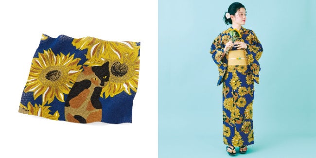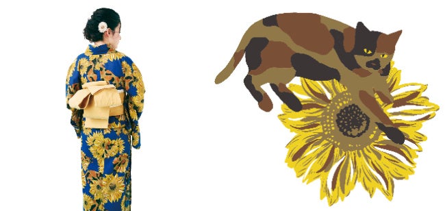 2023年もフェリシモ「猫部™」からオリジナル浴衣が新登場!個性豊かなサビ猫さんと大輪のひまわりが大人っぽく彩る「サビ猫とひまわりのモダン浴衣」