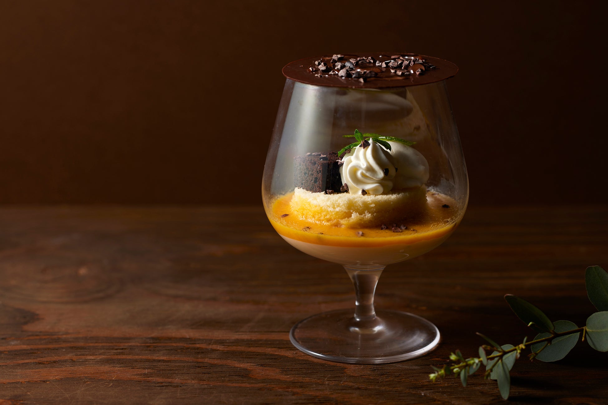 スモークの演出とブランデーの香りを楽しむ、幻想的な締めパフェが登場