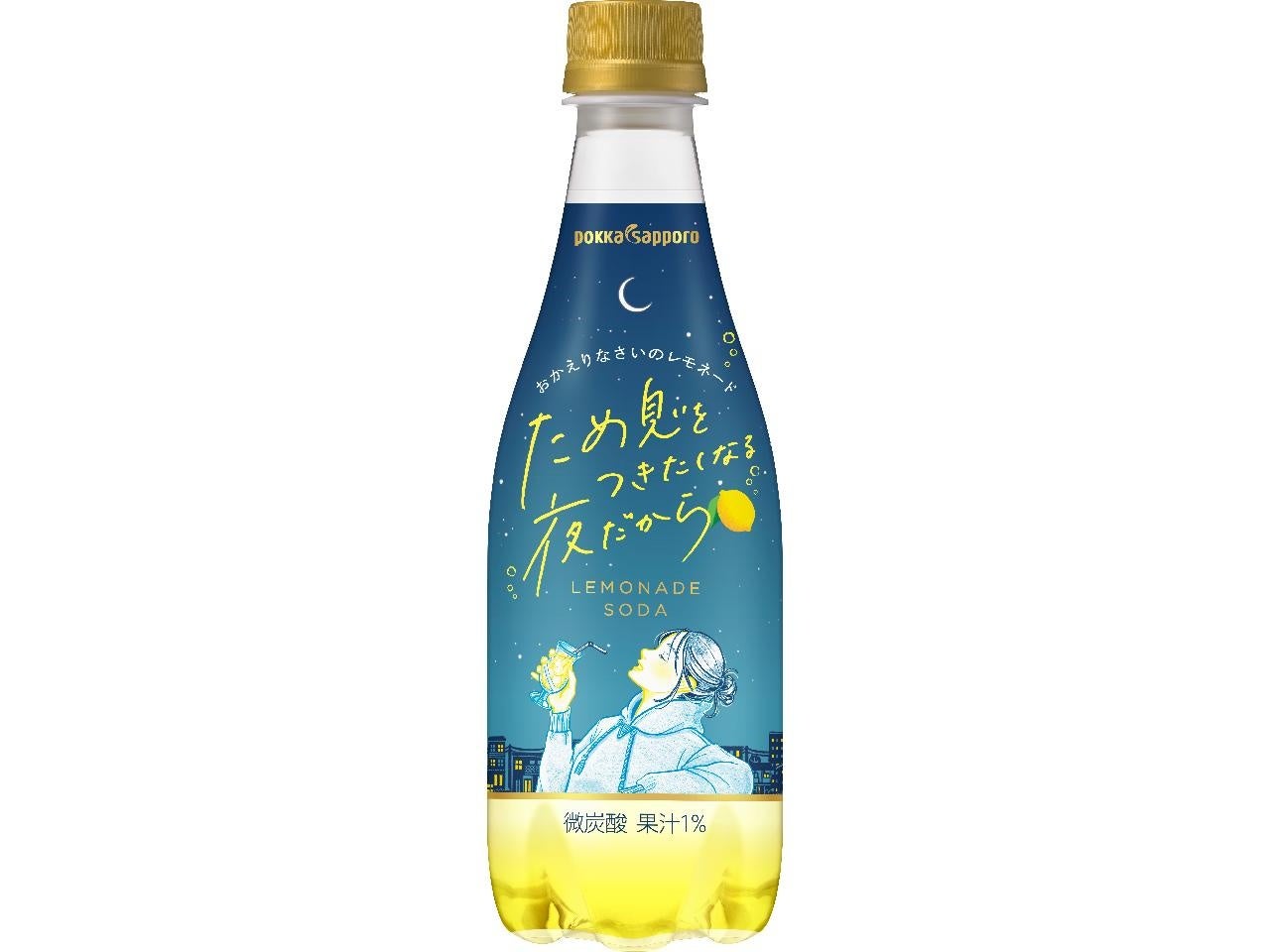 また、当社が実施した調査よりレモン飲料は「疲れを癒したいリラックスシーン」での飲用意向が高いことや、約半数以上の女性が「帰宅後の自分時間に有糖炭酸飲料を飲用したい」とのニーズがある事を踏まえ、ターゲット層の心の声に寄り添うレモネード新商品「ため息をつきたくなる夜だから」の商品化を実現しました。本商品は夜の自分時間に飲みたくなる大人向けのレモネードとして「香り×甘味×苦味」にこだわり、開けた瞬間に広がるレモンの香りや、やさしい口当たりで甘さの中にほろ苦さが感じられる味わいをお楽しみいただけます。