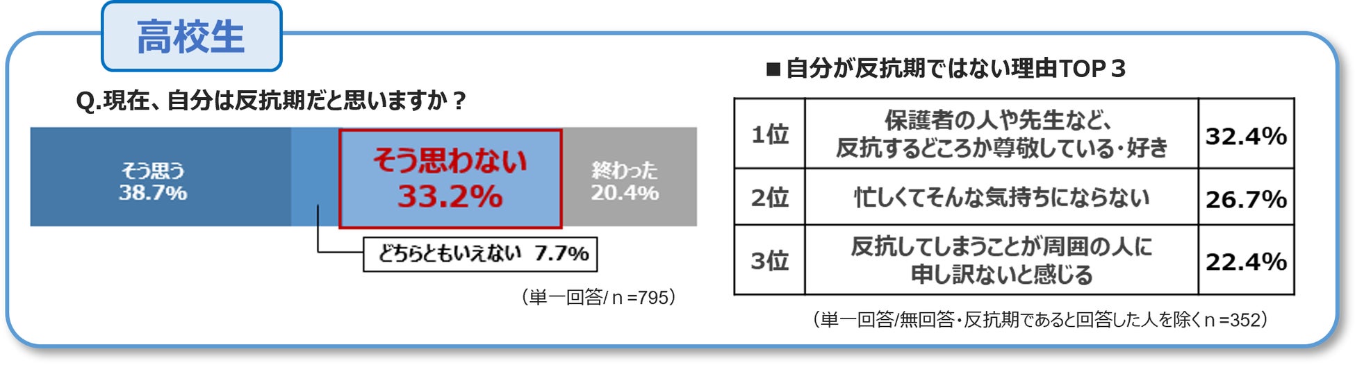 自分は反抗期ではないと思う高校生の3割超が、“保護者や教師を尊敬している・好き”