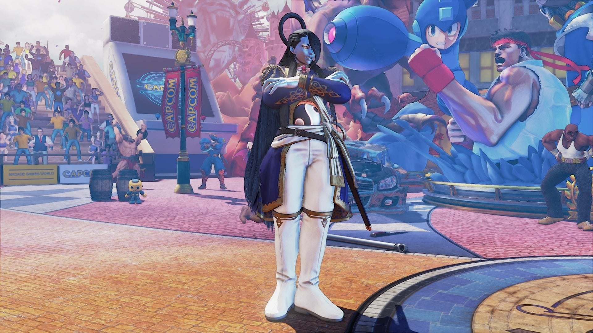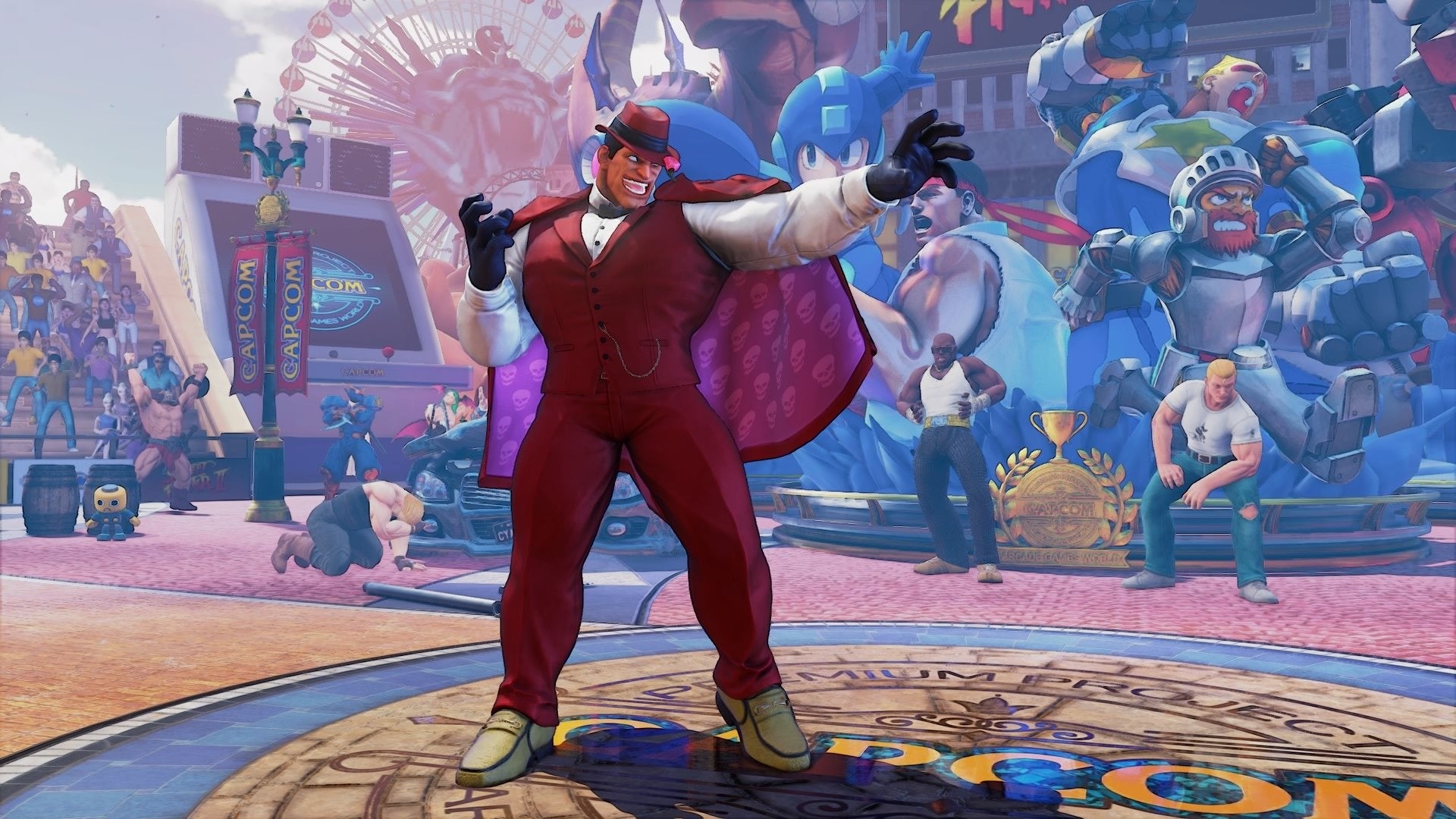 新たなステージ「Ring of Arcade」も登場! キャプテンコマンドーやロックマン、アーサーといったカプコンのアーケードゲームに登場する人気者たちが大集合のステージだ。