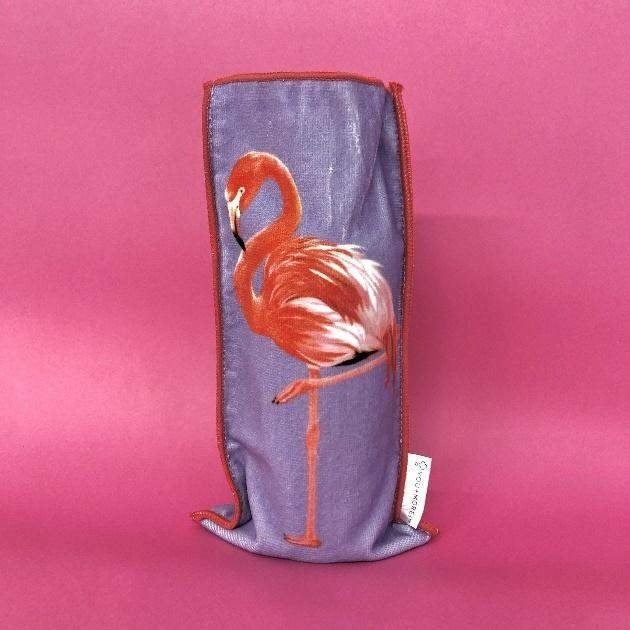 ペットボトルの水滴をキャッチしてくれる、便利なタオルケース。ペットボトルを入れて机に置けば、フラミンゴがバランスをとって、立っているように見えるデザインです。綿100%なので肌なじみよく、二つ折りにしてハンカチとして持ち歩いても便利です。