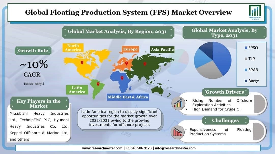 Research Nester Private Limitedは調査レポート「浮体式生産システム(FPS)市場:世界的な需要の分析及び機会展望2031年」2022年2月 21 日に発刊しました。これは、予測期間中に、市場の詳細な分析とともに、業界の詳細な洞察を提供します。レポートは、市場規模と決定に基づいてさまざまなパラメーターについて説明します。これらには、市場価値、年間成長、セグメント、成長ドライバーと課題、および市場における主要企業などが含まれます。