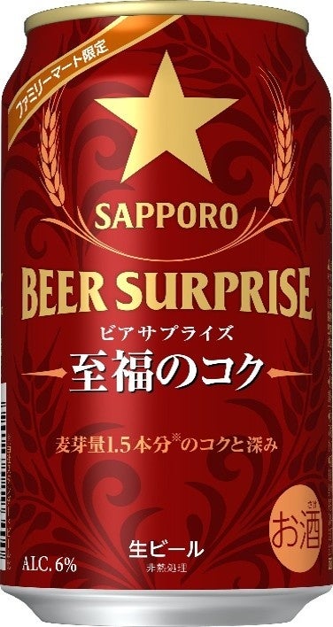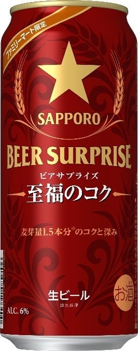 サッポロホールディングス(株)のグループ企業であるサッポロビール株式会社(本社:東京都渋谷区、代表取締役社長:時松浩、以下サッポロビール)と、株式会社ファミリーマート(本社:東京都港区、代表取締役社長:細見研介、以下ファミリーマート)は、「サッポロ ビアサプライズ至福のコク」を全国のファミリーマート酒類取扱店約 15,800店(注1)で11月11日(火)から数量限定で発売します。(注2)