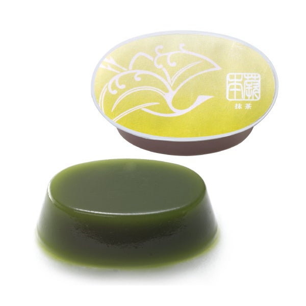 京都産宇治抹茶“天緑” のふくよかな茶葉の味わ いと香りが広がる抹茶プリンと、とろけるようなやさ しい甘さのミルクプリンのマリアージュ。