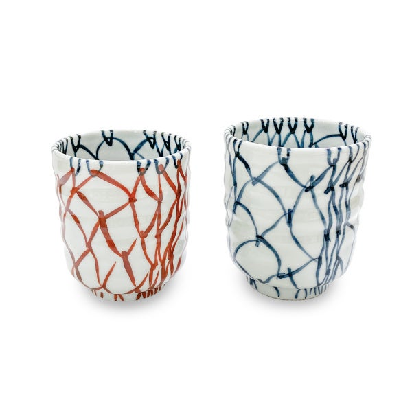 網目の躍動感を表現した幸之介窯の作品です。新茶の緑とよく合います。