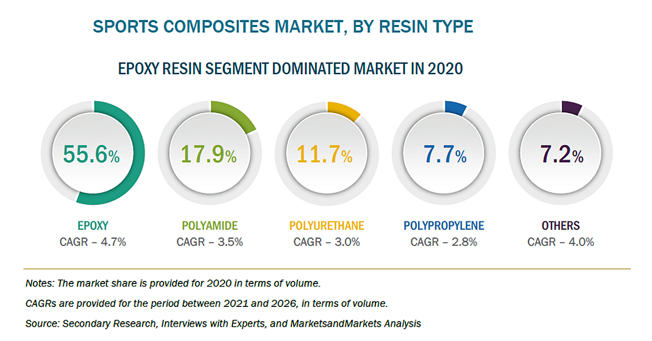 スポーツ用複合材の市場規模は、2021年の41億米ドルからCAGR4.8%で成長し、2026年には51億米ドルに達すると予測されています。