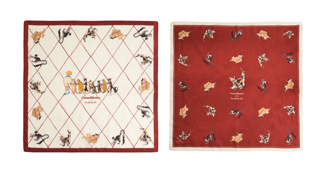 バンダナとして巻いたり、お弁当を包むなど、様々な使い方ができる、50cm×50cmの大判タイプのハンカチ2種。季節問わずに毎日を彩るデザインに仕上げました。