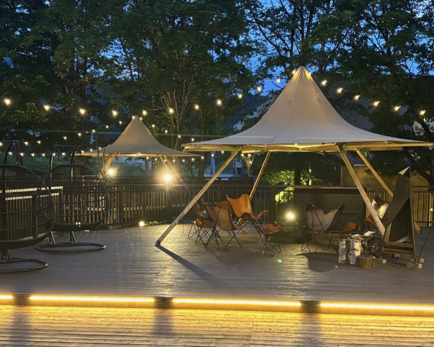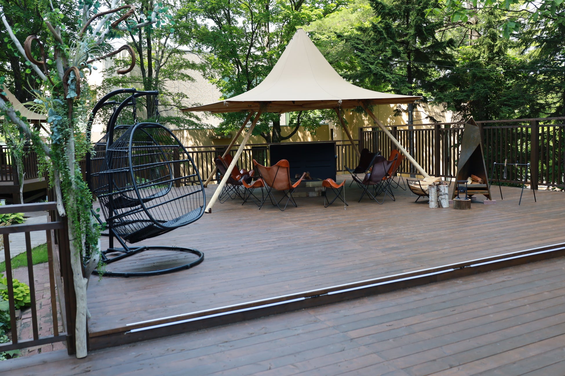 【新富良野プリンスホテル】 ホテル中庭に「ウッドデッキ」が誕生中庭にてゆっくりと過ぎる時間をご堪能いただけます