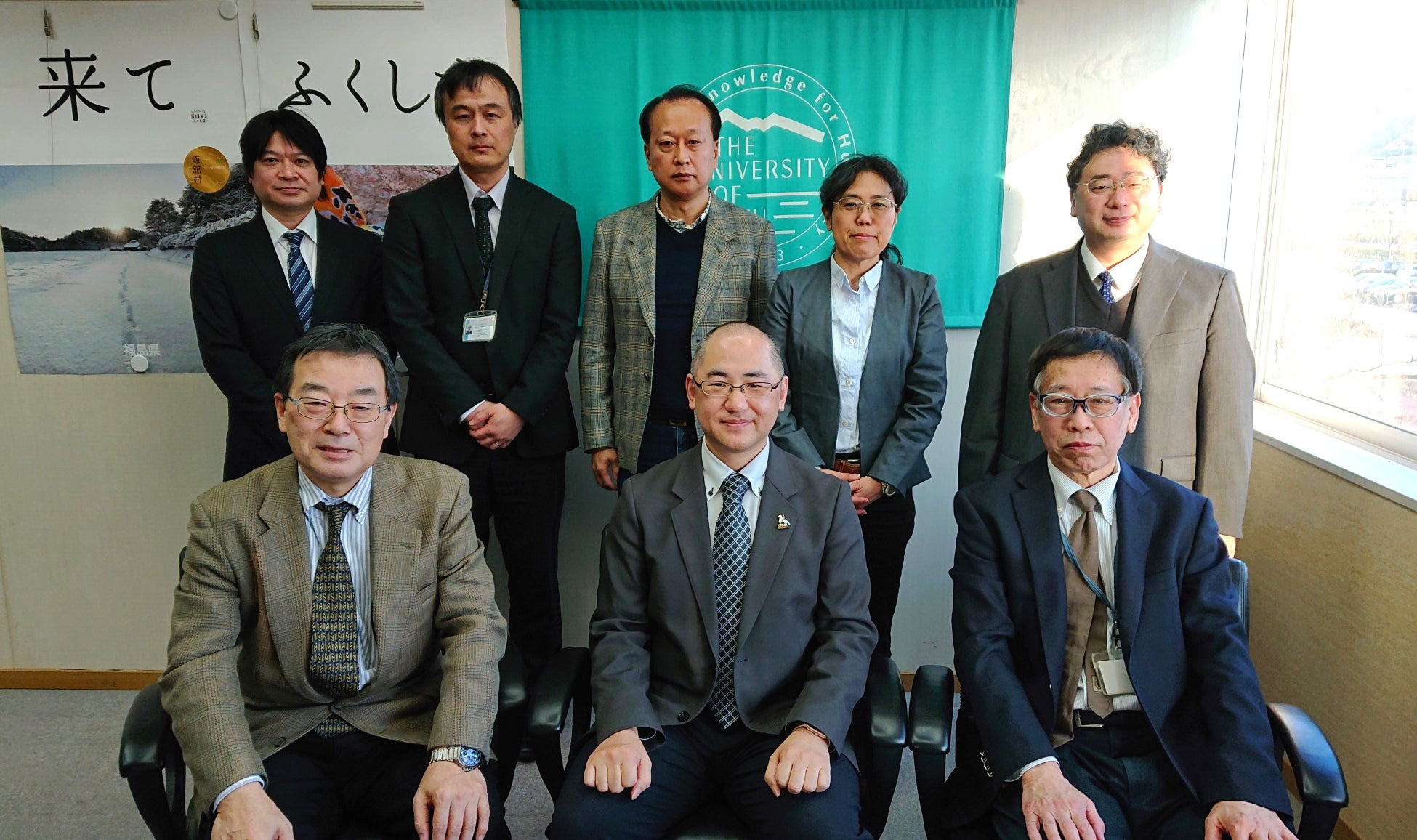 本学からは佐藤法仁副理事・副学長・上級URAが会津大学を訪問し、同大学の岩瀬次郎副理事長・副学長、宇宙情報科学研究センター(ARC-Space)の出村裕英センター長・教授、先端情報科学研究センター(CAIST) の中村章人センター長・教授、復興創生支援センターの大竹真紀子センター長・教授、棚橋崇史企画連携課長らが参加しました。また両大学の連携を通じて、会津若松周辺のみならず東日本大震災からの復興等を推進する点から、公益財団法人福島イノベーション・コースト構想推進機構(本部:福島市中町、理事長:斎藤保)(以下、「福島イノベ機構」)の伊藤泰夫理事長補佐と波多野茂正企画戦略室副室長が陪席しました。