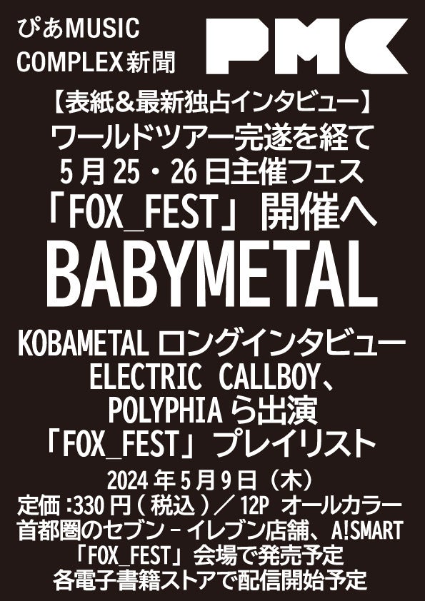 BABYMETAL表紙の『ぴあMUSIC COMPLEX新聞』、首都圏のセブン‐イレブン、A!SMARTほかで本日発売! BABYMETAL&KOBAMETAL最新独占インタビュー掲載