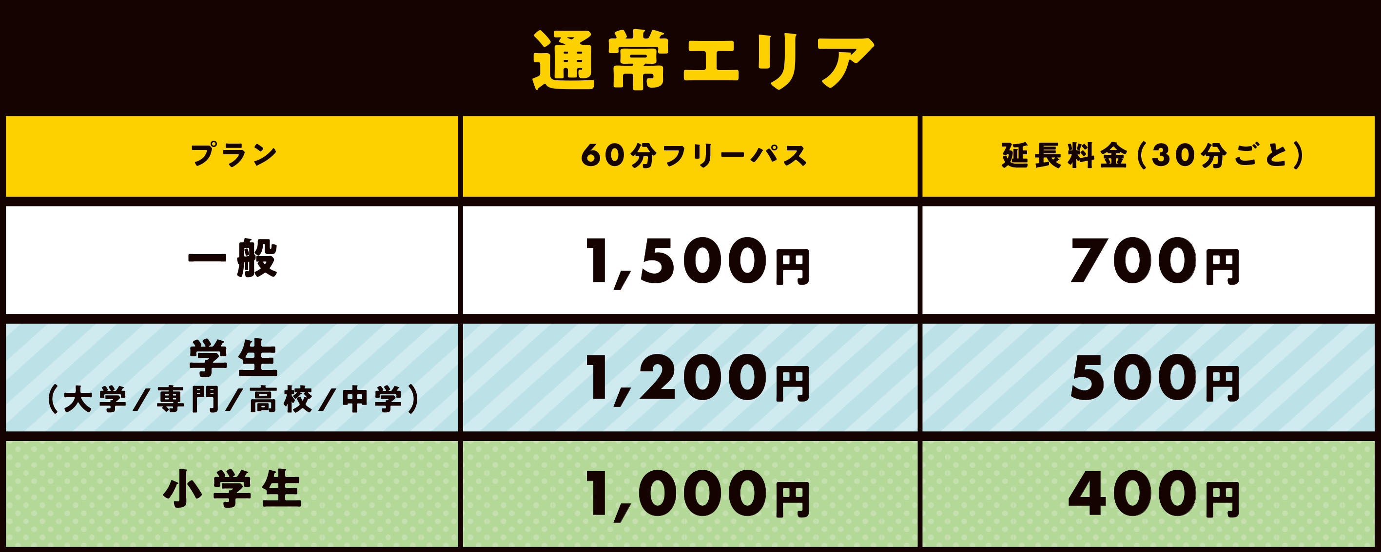 ※小学生未満のお子様は保護者同伴が必要となり、保護者の方は遊ぶことはできません。