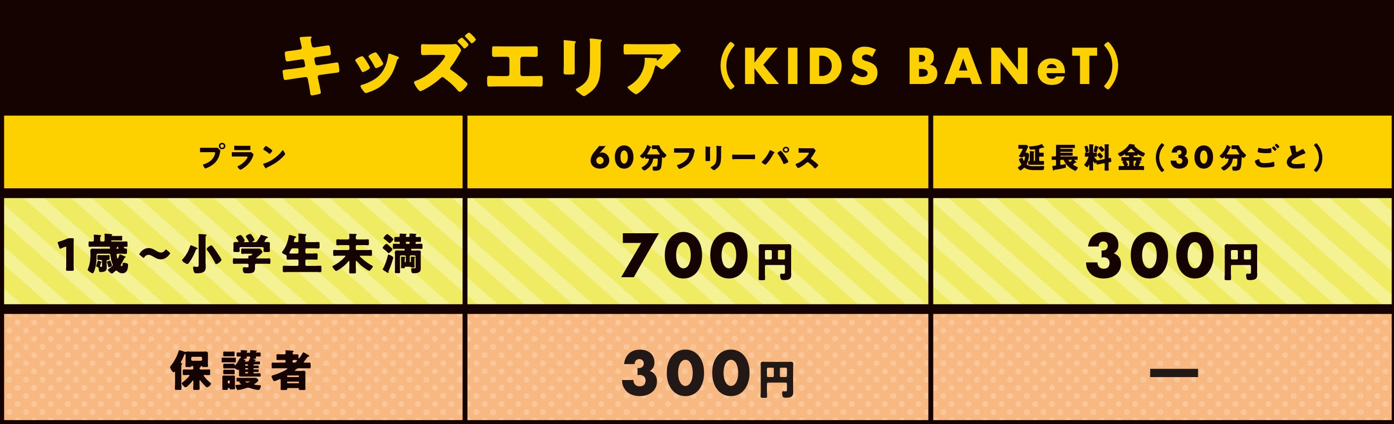 ※「キッズエリア」は、小学生未満のお子様がお楽しみいただけるエリアとなります。(小学生未満のお子様はキッズエリアでしか遊べません。)