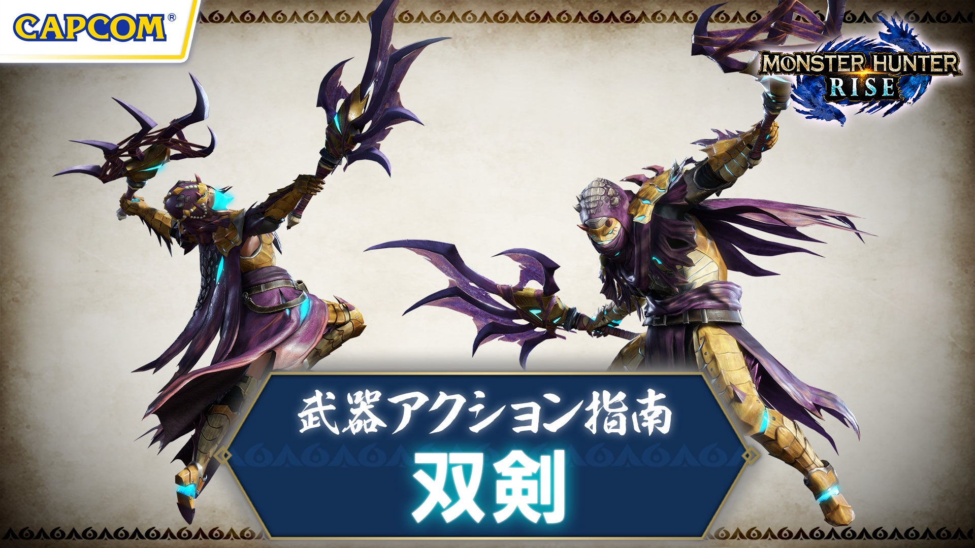 好評発売中『モンスターハンターライズ』は、武器の基本アクションから実践での⽴ち回り⽅を紹介する「武器アクション指南」企画をお届け! 圧倒的な手数と、怒濤の連続攻撃が可能な武器「双剣」をピックアップ! メインの武器として使⽤している⽅はもちろん、そうでない⽅も番組を観て「双剣」を装備して番組レギュラーメンバーと⼀緒にオンラインマルチプレイに参加しよう!