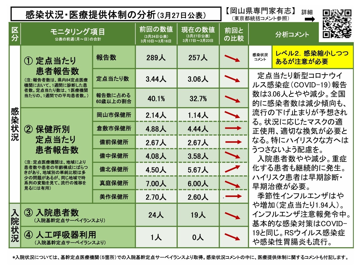 ・岡山県内の感染状況・医療提供体制の分析について(2025年3月24日現在)