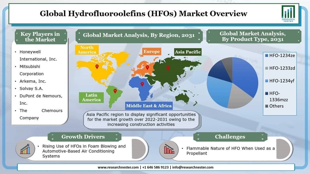 - 世界のハイドロフルオロオレフィン(HFO)市場は、2022ー2031年の予測期間中に堅調なCAGRで成長することにより、重大の収益を上げると推定されています。