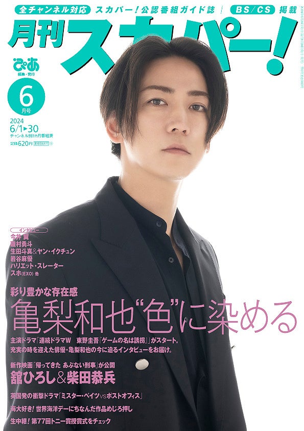 「連続ドラマW 東野圭吾『ゲームの名は誘拐』」で主演を務める亀梨和也が表紙に登場!「月刊スカパー!」2024年6月号が5月24日(金)に全国書店やWEBストアにて発売。