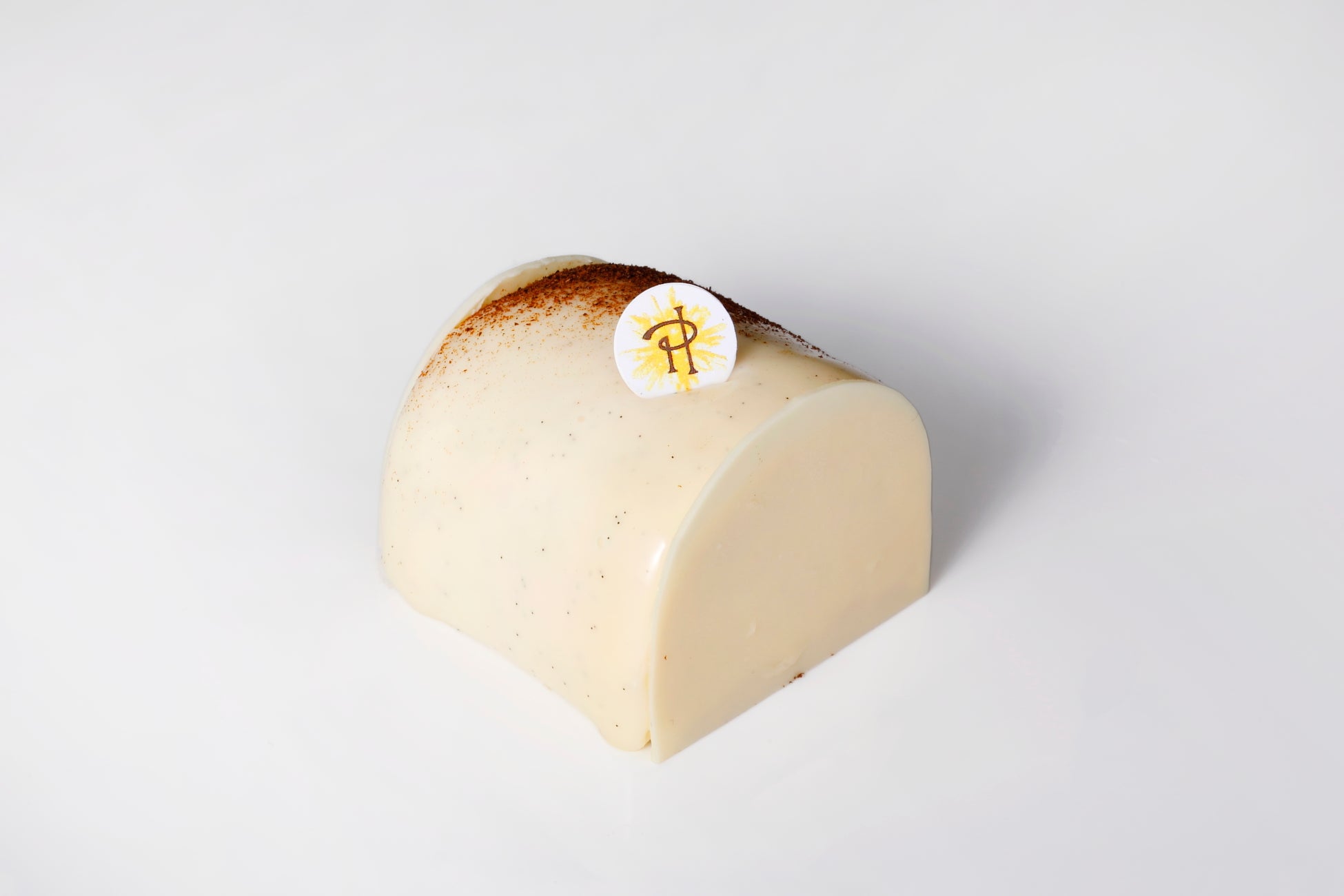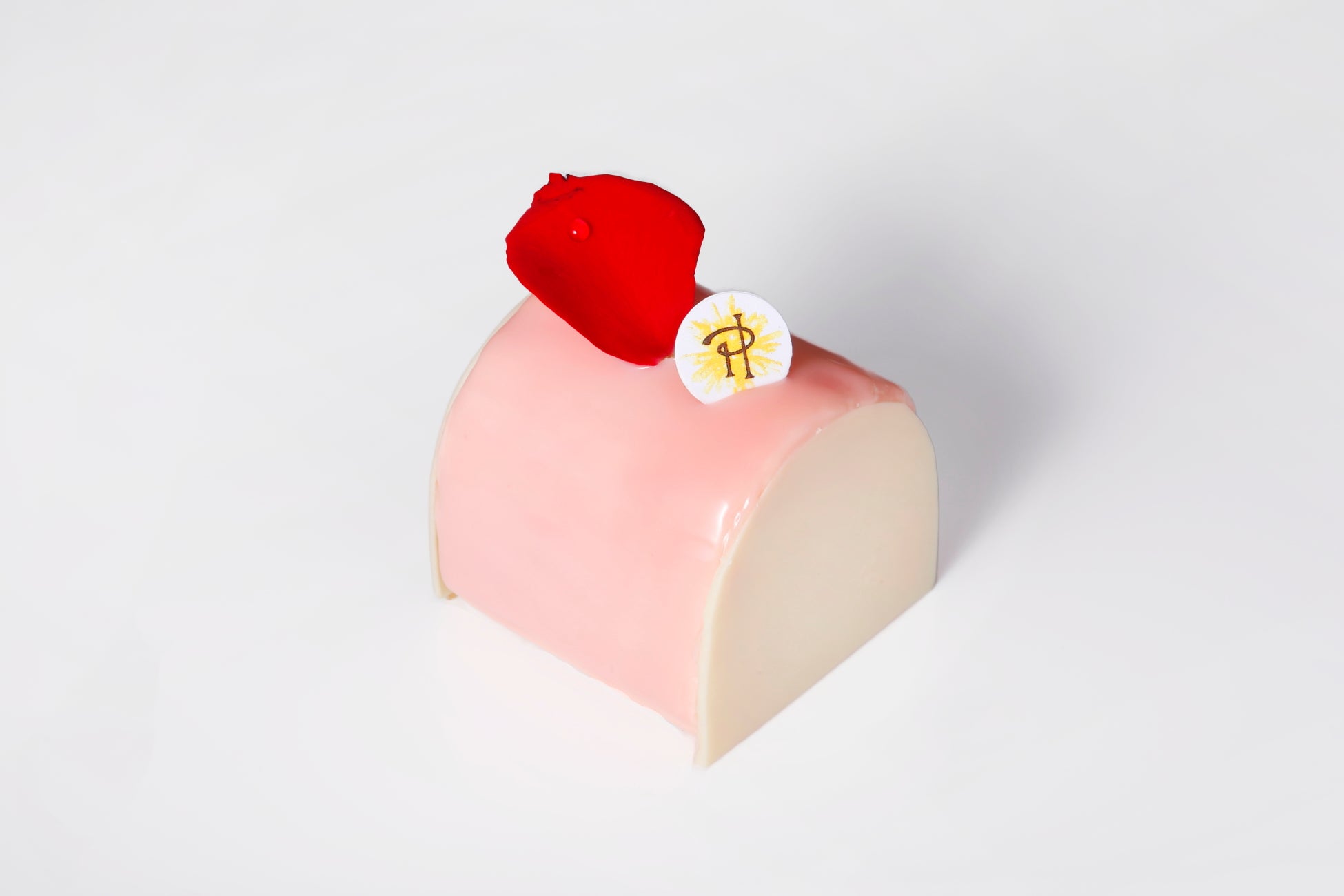 「ピエール・エルメ・パリ」を代表するフレーバー『イスパハン』が、ビュッシュの形で登場。バラの花びらがライトクリームと巧妙に融合して華やいだライチの風味に呼応し、甘酸っぱいフランボワーズがアクセントを加えています。さらに、わくわくした歯ごたえと柔らかな舌ざわりの両方を兼ね備えたマカロン生地が味覚のバックグラウンドを成しています。