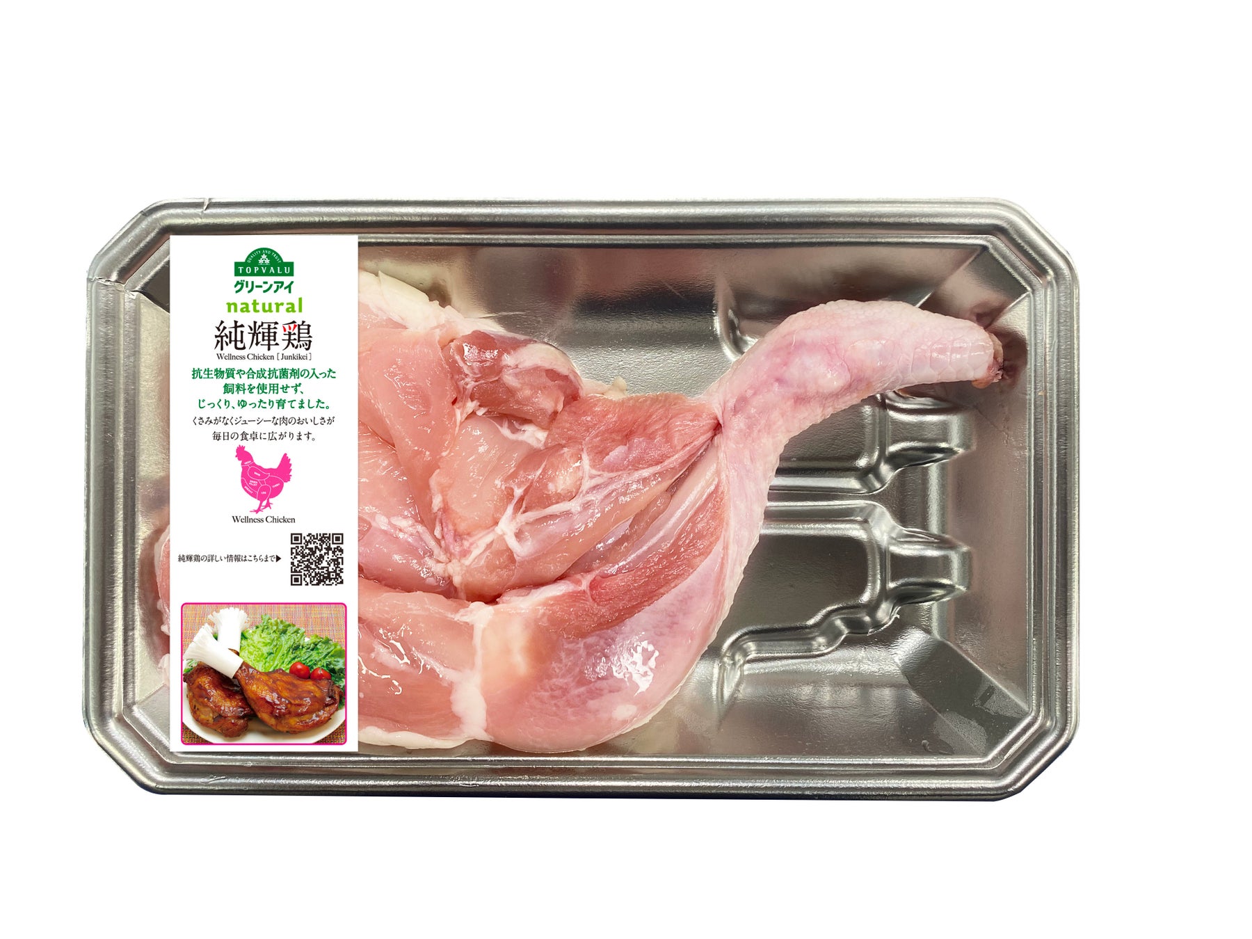 抗生物質・合成抗菌剤を使用しない飼料で育てた※1「トップバリュ グリーンアイナチュラル 純輝鶏(国産)」を原料に使用しています。鶏肉がもつうま味や高たんぱく質はそのままに、必要以上の皮下脂質を抑え、独特の臭みを低減します。加熱調理後もやわらかくしっとりした食感を保つ鶏肉です。