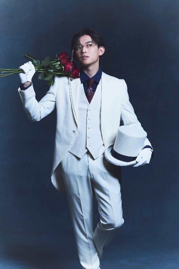 上下真っ白のタキシードに袖を通し、モノクル(片眼鏡)やシルクハットといった小物を身に着けると、「自分でも驚くくらいハマっていました」と大満足。「ジャケットを羽織った瞬間、テンションがやばかったです。超楽しかったですね、夢のような時間。親戚にいじられないかってことだけが心配です(笑)」
