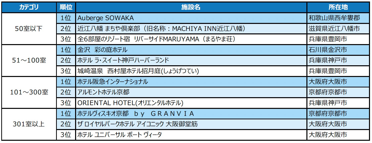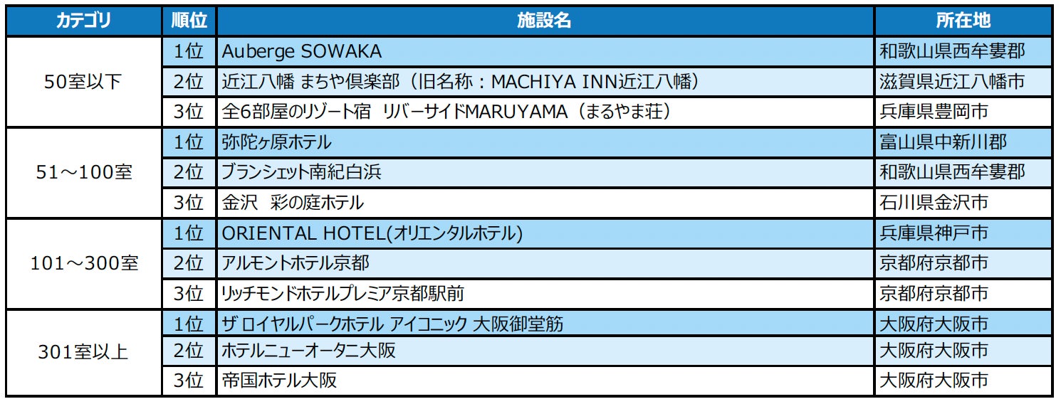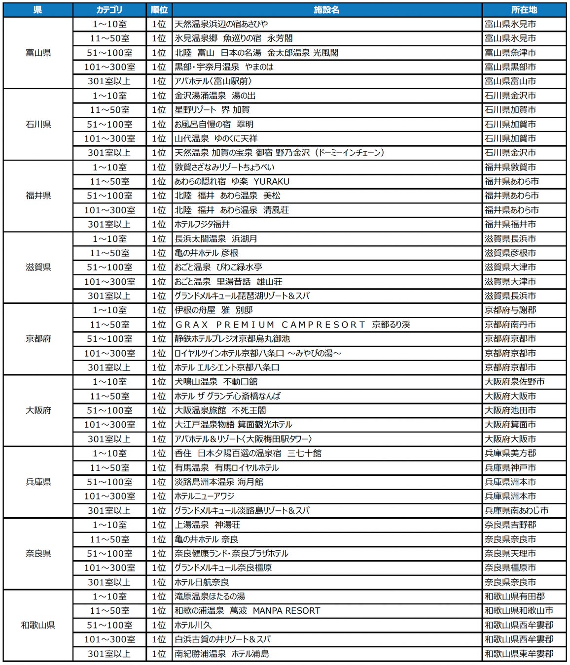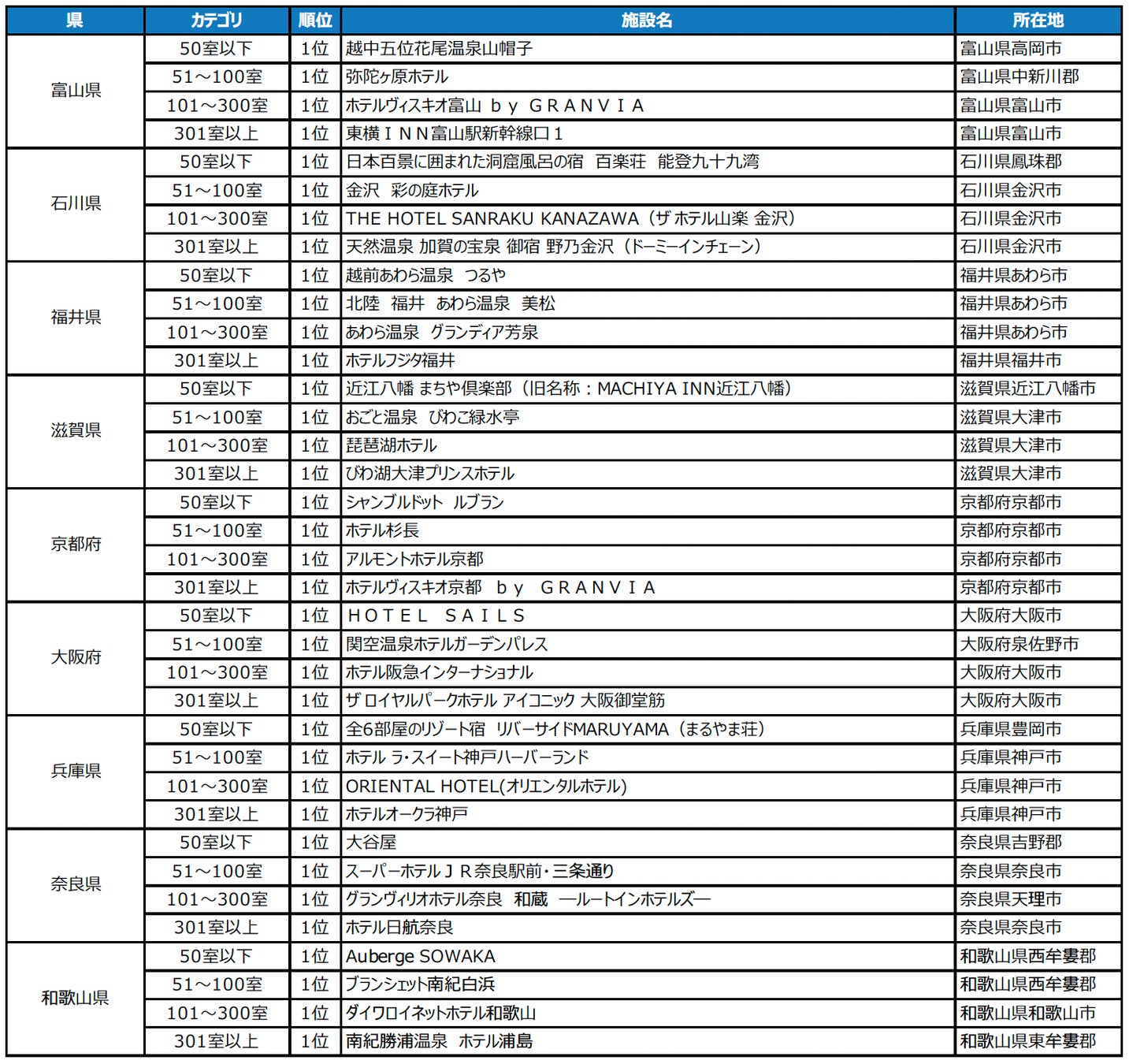 2024年度の1年間に顕著な実績を収めた宿泊施設を表彰「じゃらんアワード2024」近畿・北陸ブロック発表