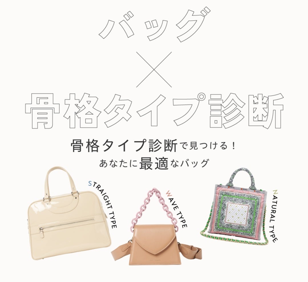 骨格タイプ診断でお似合いのバッグが見つかる事をご存じですか? デザイン、大きさ、素材など、貴女の魅力を引き立てるバッグを、専門スタッフが骨格タイプに基づいて、アドバイスします。