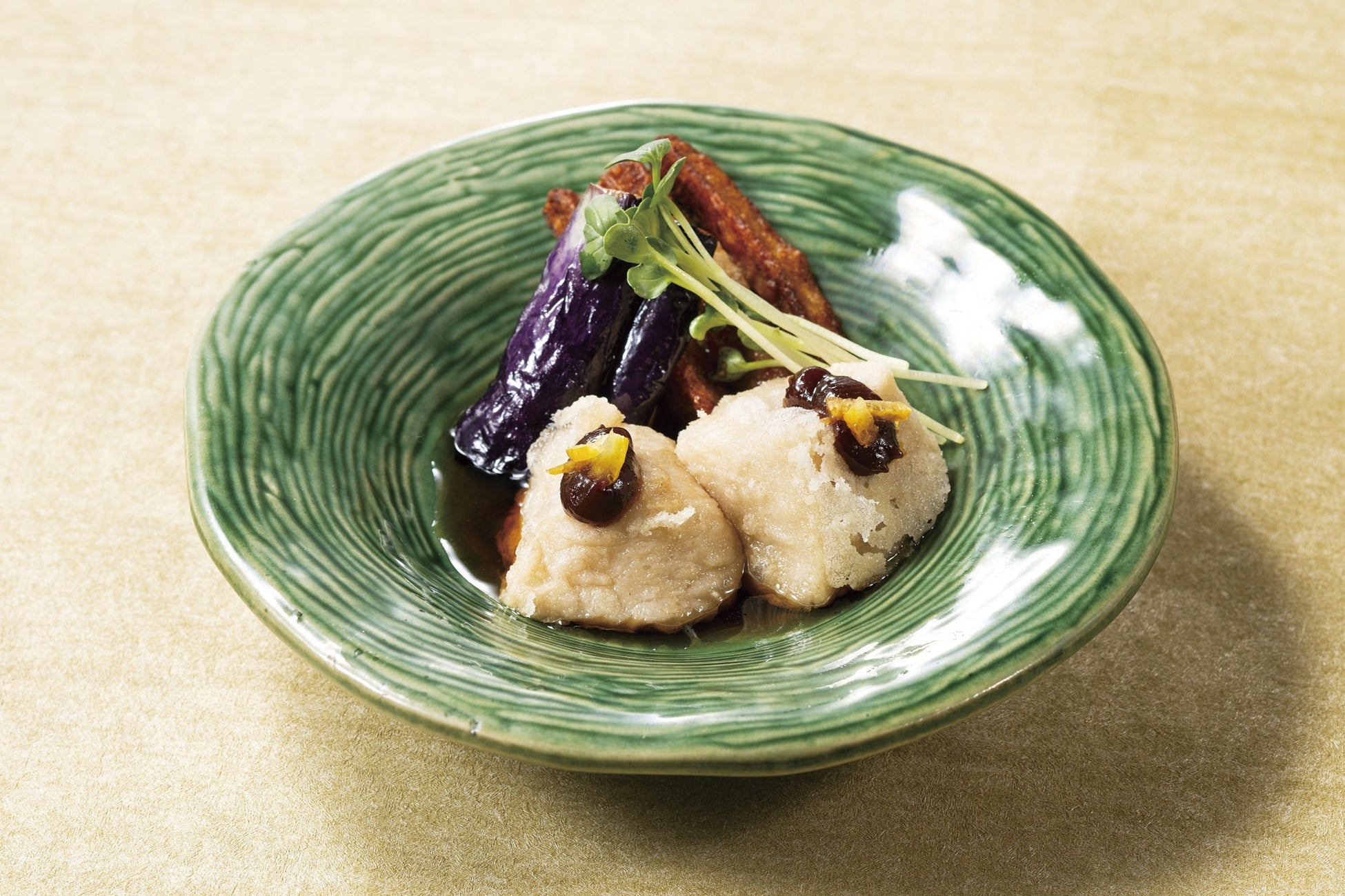 上庄さといもをめんつゆで味付けし、唐揚げにしました。仕上げにからすみを掛けることでさらに味わい深くなっています。