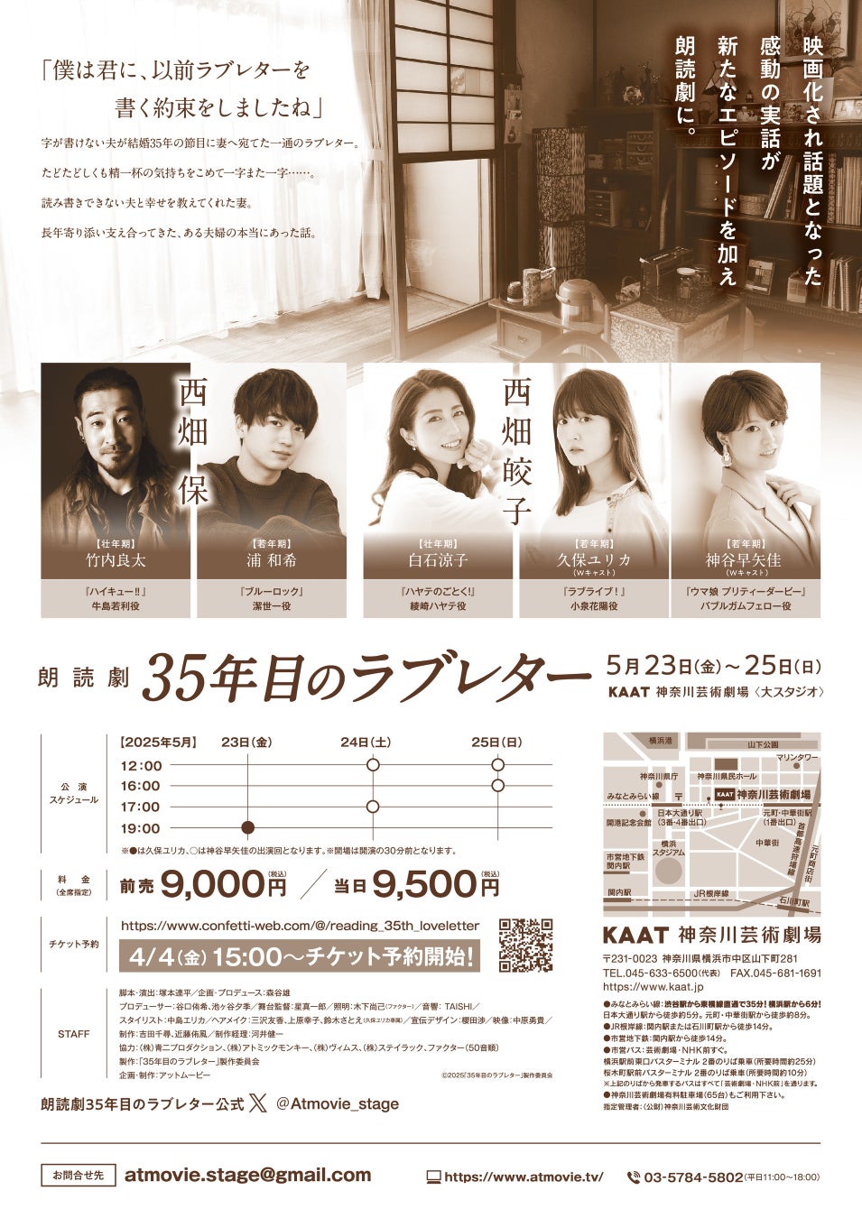 この度、大ヒット上映中の映画「35年目のラブレター」が朗読劇として2025年5月23日(金)~25日(日)にKAAT神奈川芸術劇場<大スタジオ>にて上演されることが決定いたしました。
