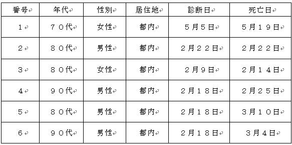 都内で新型コロナウイルスに感染した方が死亡されましたのでお知らせします。