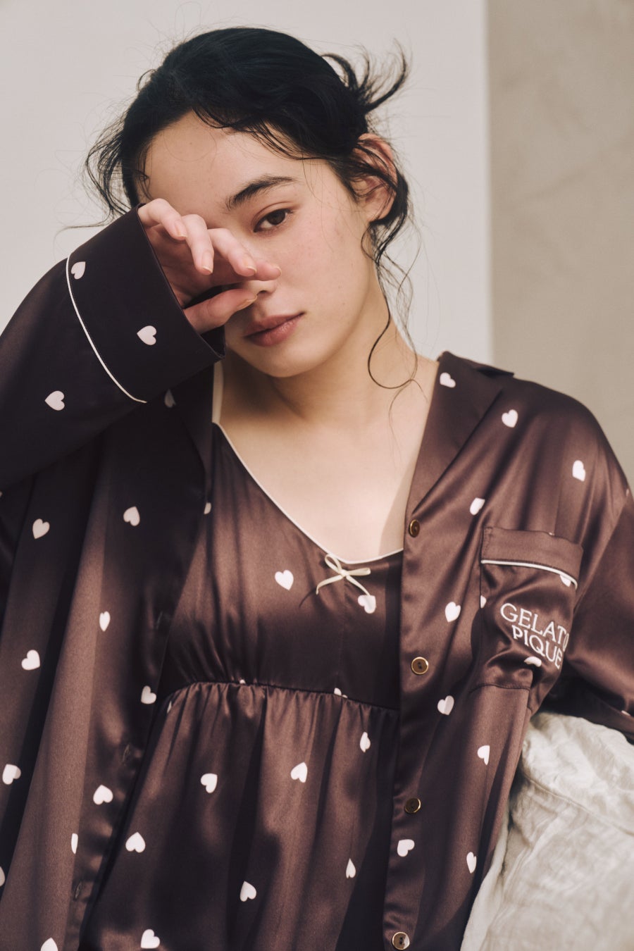 ・【Valentine】ハート柄サテンシャツ ¥8,360
