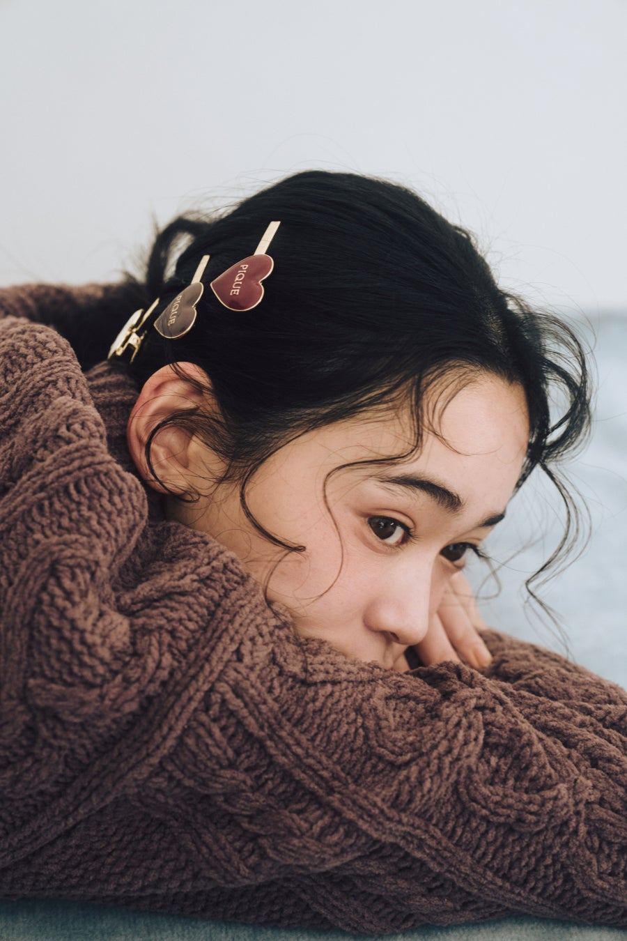まるでチョコレートのようなぷっくりとした立体感にこだわった、PIQUEロゴ入りのハート型ヘアピンセット。高級感のあるメタル素材を使用しています。