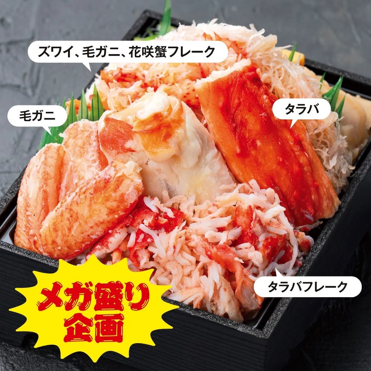 4種のかにほぐし身をふんだんに使い、たらば棒肉を盛り付けました。