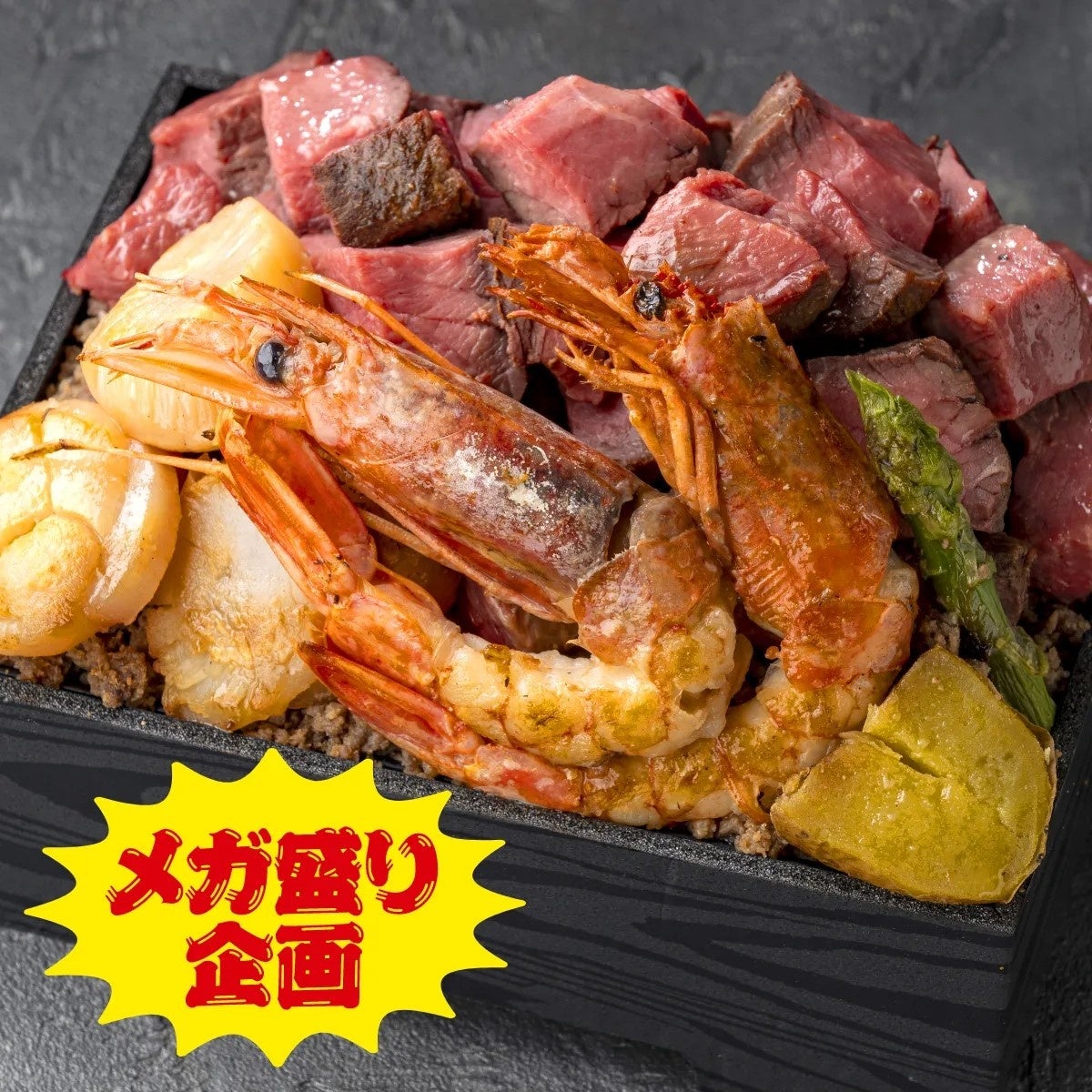 牛肉・エビ・ホタテを贅沢に盛り付け。