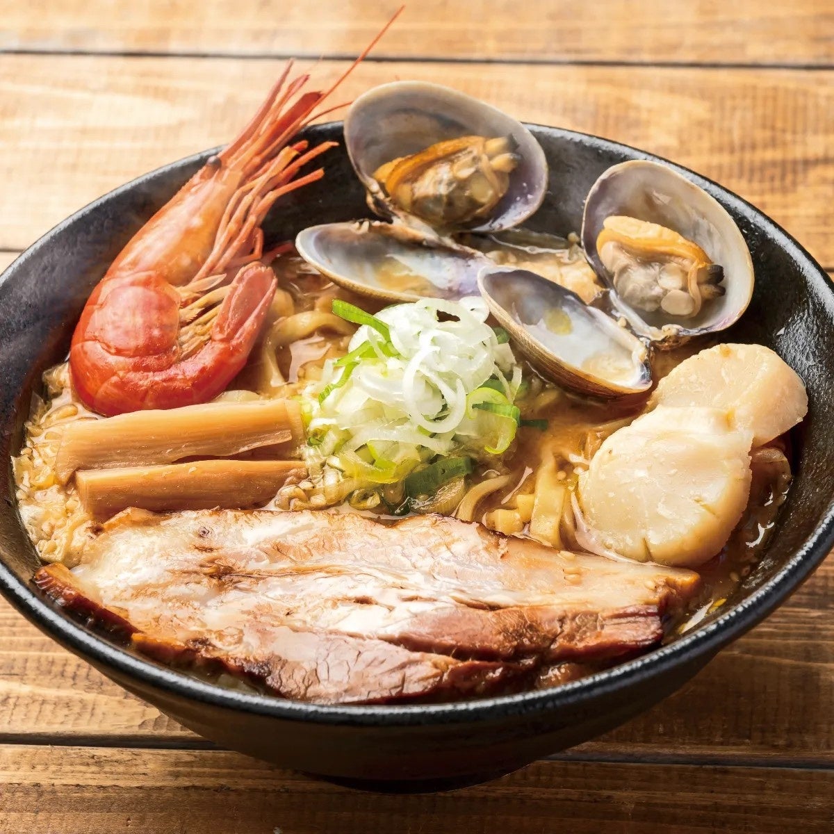希少な根室産北海シマエビと厚岸産あさり、オホーツク産ホタテ貝柱をトッピング!