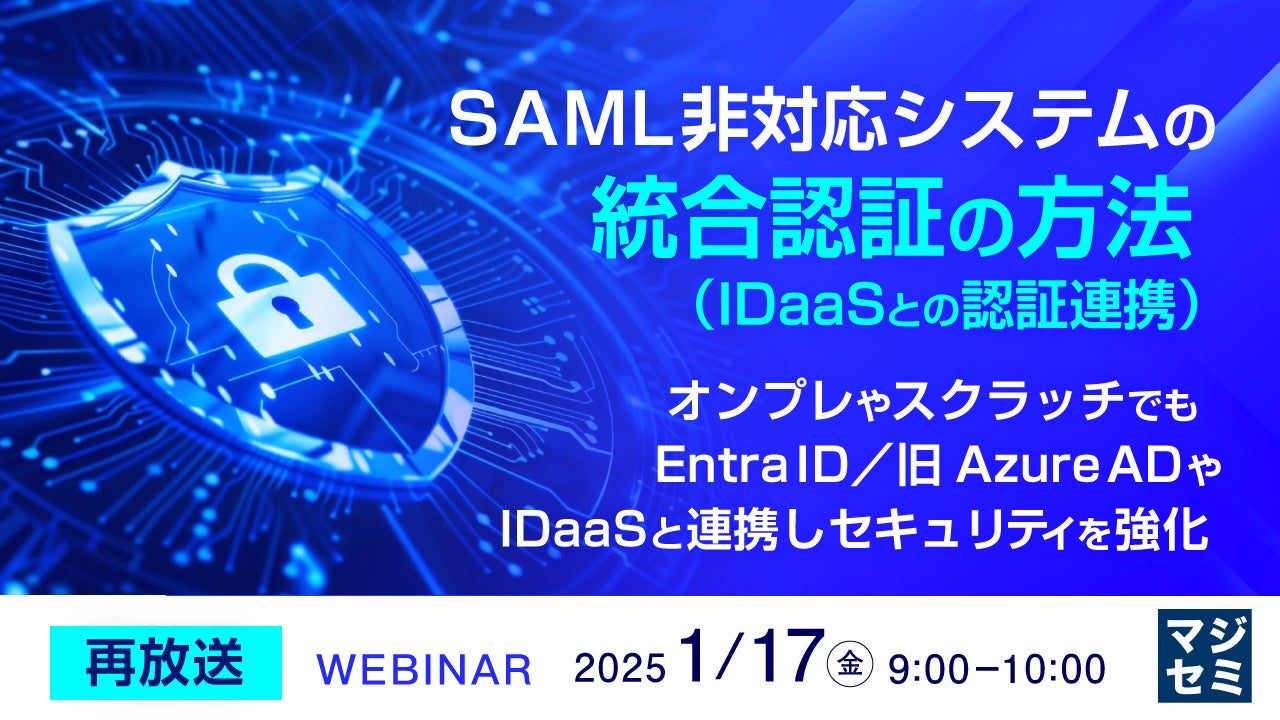 マジセミ株式会社は「SAML非対応システムの統合認証(IDaaSとの認証連携)の方法」というテーマのウェビナーを開催します。