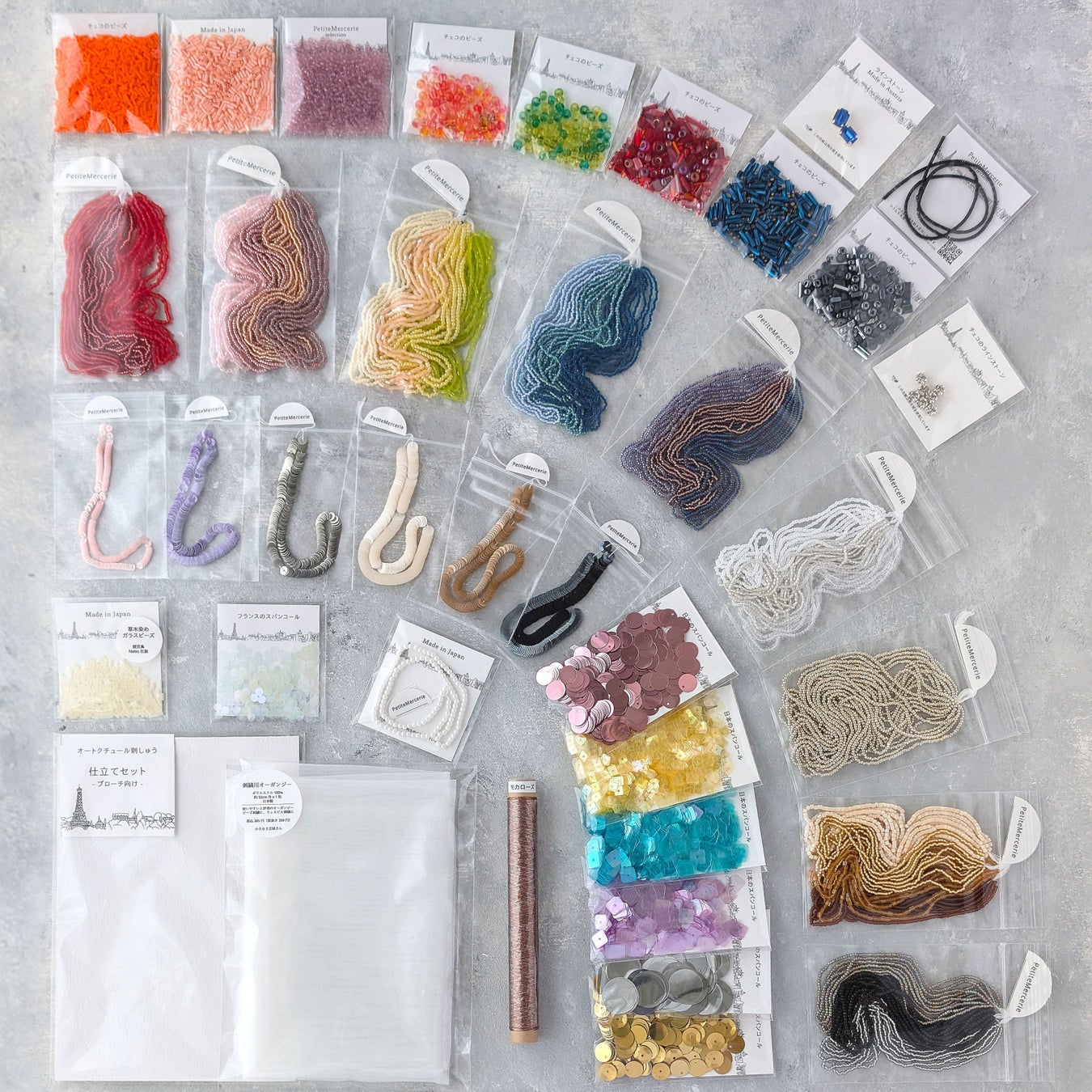 めずらしいスパンコールやビーズが揃う、刺しゅう材料専門の〈小さな手芸屋さん〉。オートクチュールで用いられるフランス製スパンコール、色鮮やかな糸通しビーズ、初心者から上級者まで楽しめる刺しゅうキットを幅広くご紹介します。こだわりの手仕事、作品を身にまとう喜び、贈る幸せ——自ら作る豊かさを、厳選素材とキットでご体験ください。〈小さな手芸屋さん〉は実店舗を持たないため、日本橋三越本店の本イベントが実際に手に取って選べる貴重な機会です。
