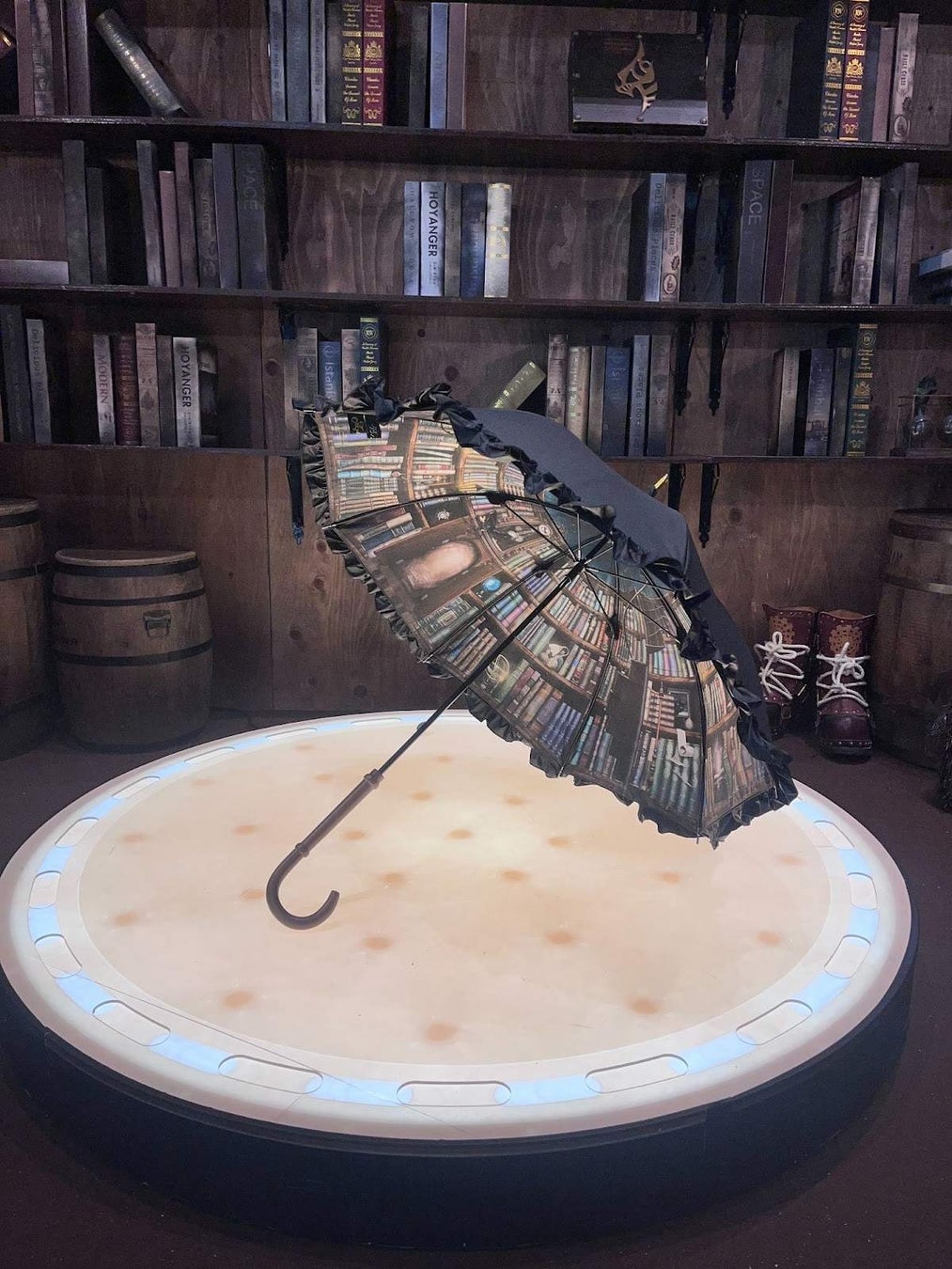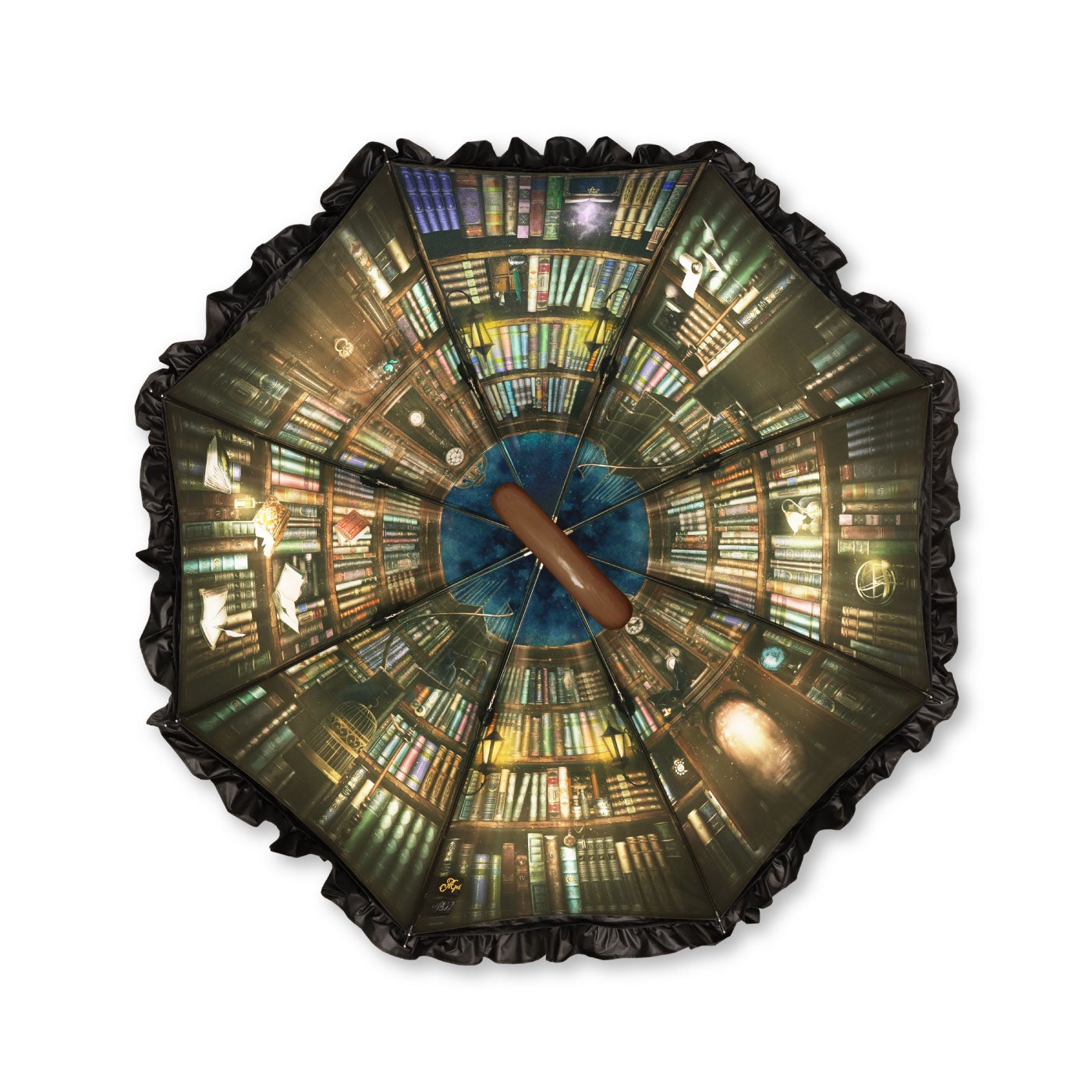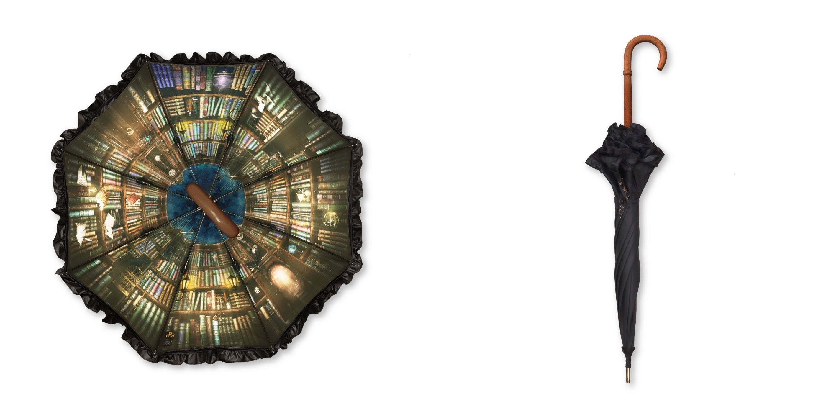 傘を開くとどこでも異空間を出現させ魔法使いの秘密の書斎が頭上に広がったような気分になれます